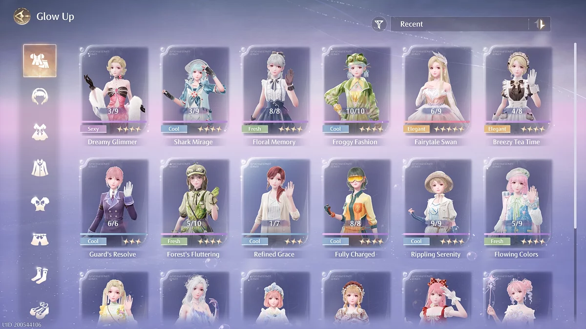- Glow Up — прокачка нарядов и повышение их уровня;