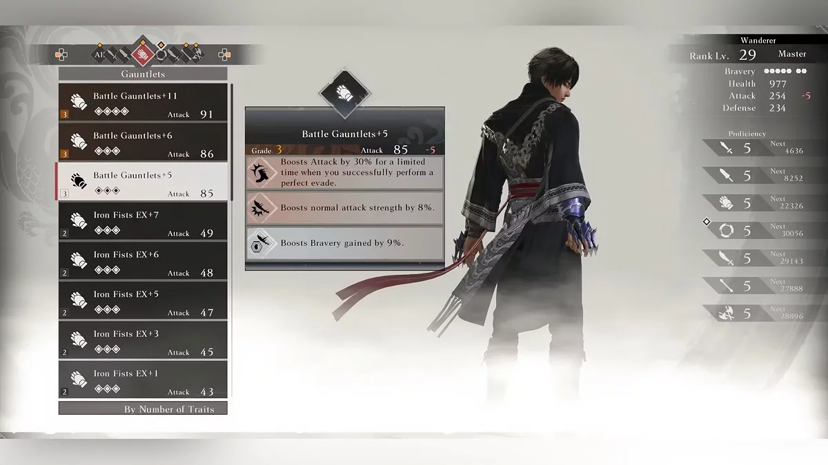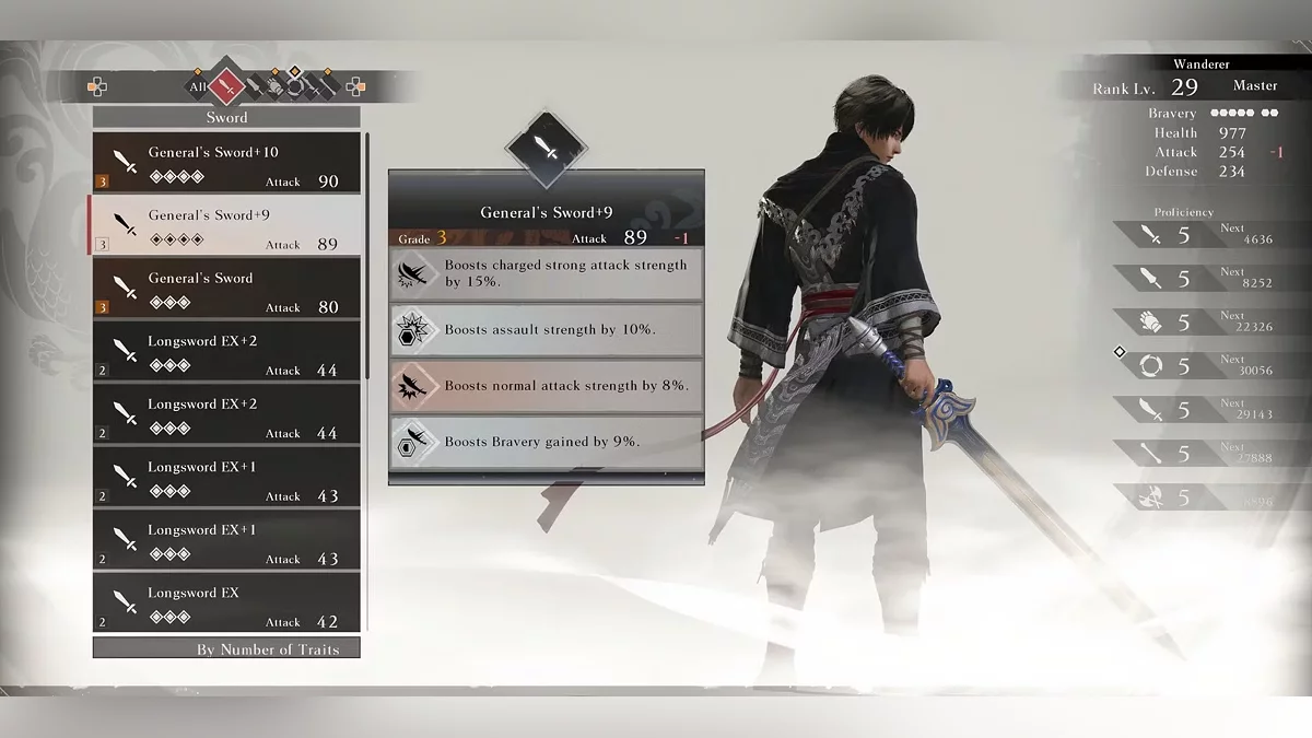 Чем выше выбранная сложность прохождения, тем более мощное оружие вы сможете найти. Чаще всего оно падает с вражеских командиров-офицеров. Однако есть нюанс — за первое прохождение вы не откроете снаряжение выше 6 класса редкости. Чтобы найти максимально крутое оружие 7 класса, придется начать «Новую Игру+». Стоит различать класс редкости и улучшения. Меч может быть +9, но всё ещё третьего класса редкости.