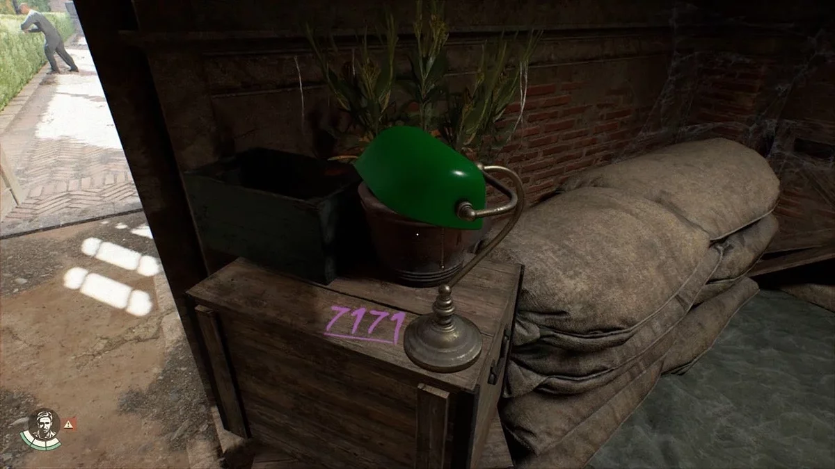 Выключите лампу, чтобы увидеть код 7171, который слабо отображается на поверхности ящика при свете. Введите этот код в замок сейфа, чтобы открыть его. После этого Рог для питья станет вашим.