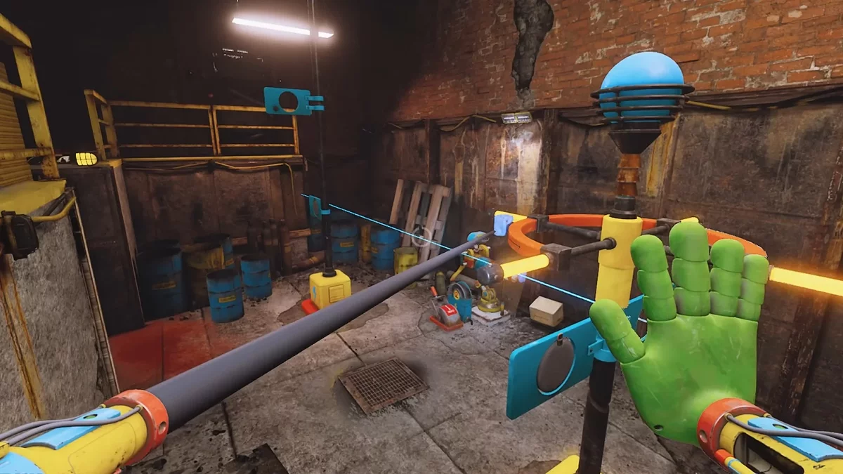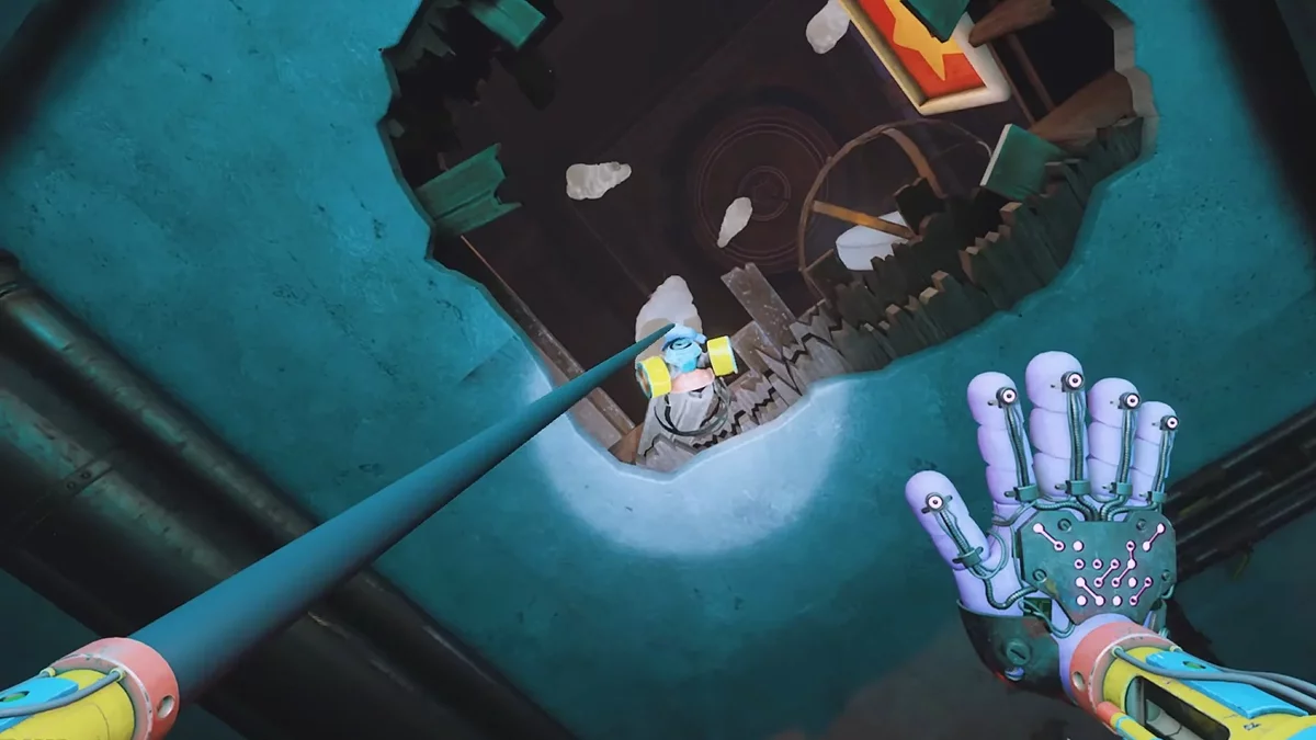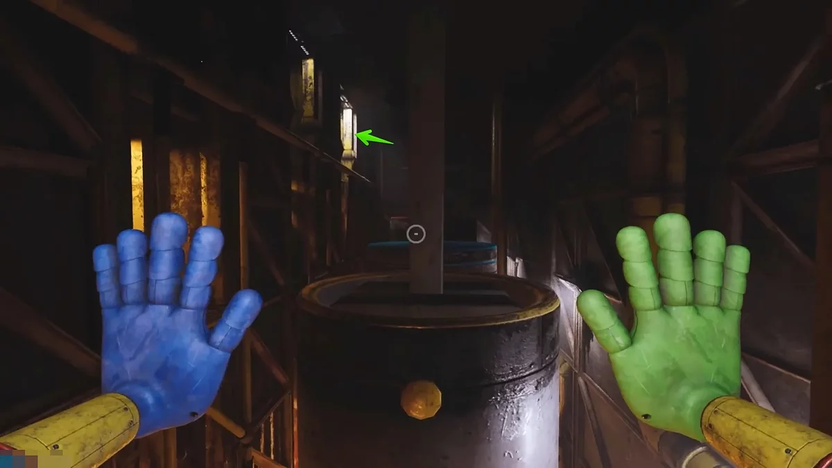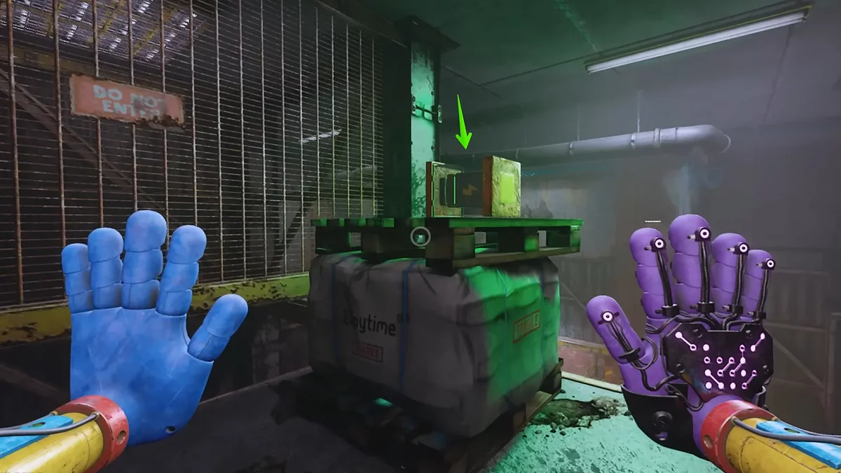 В трубе бегите вперёд, а на развилке сверните налево. Добравшись до большого помещения с игрушками, следуйте влево и подготовьте фиолетовую перчатку. Перед обрывом можно использовать её.