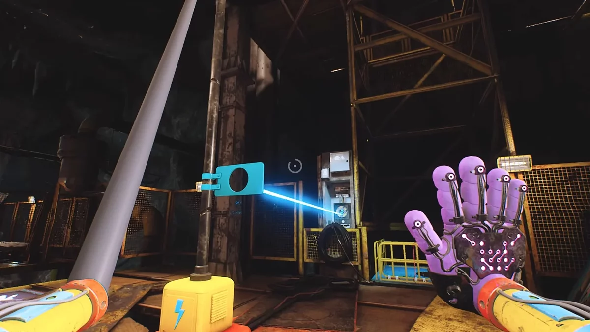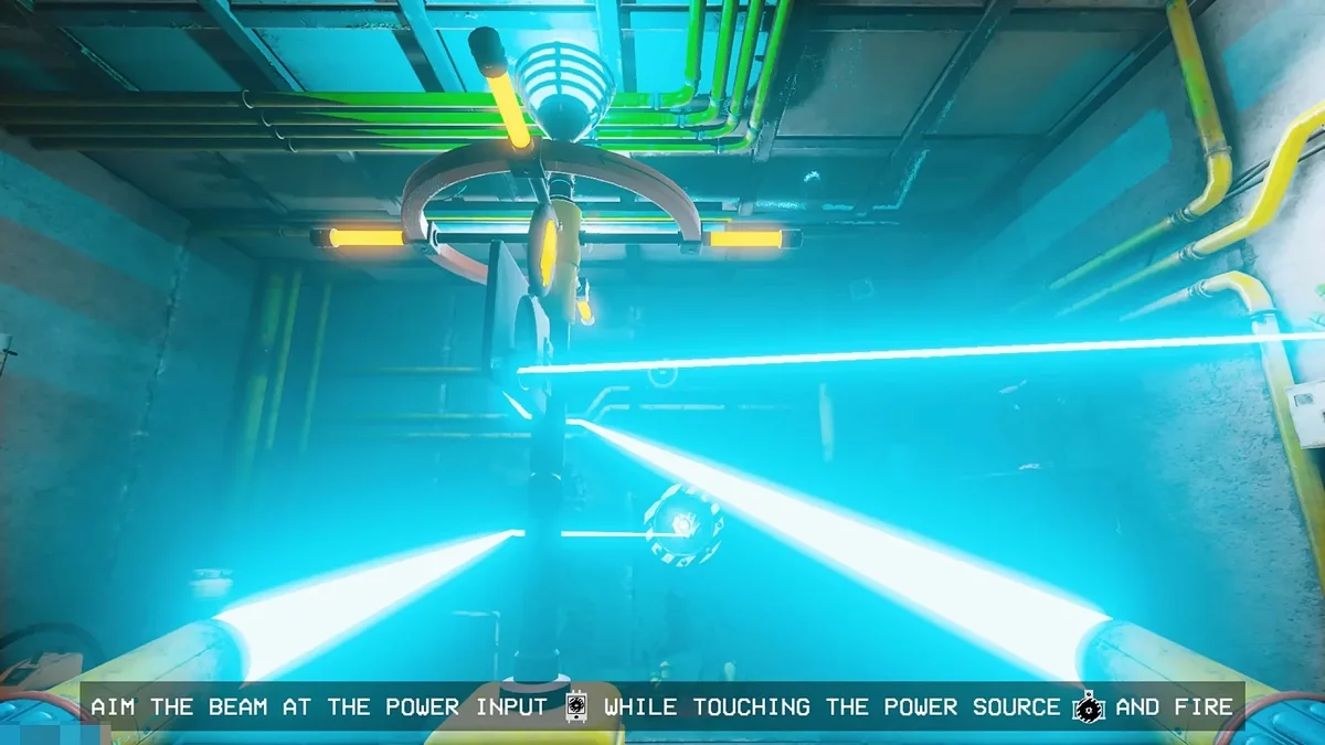 Здесь вы познакомитесь с новым типом головоломки. Поверните стойку так, чтобы луч был направлен на розетку, затем примените перчатку.