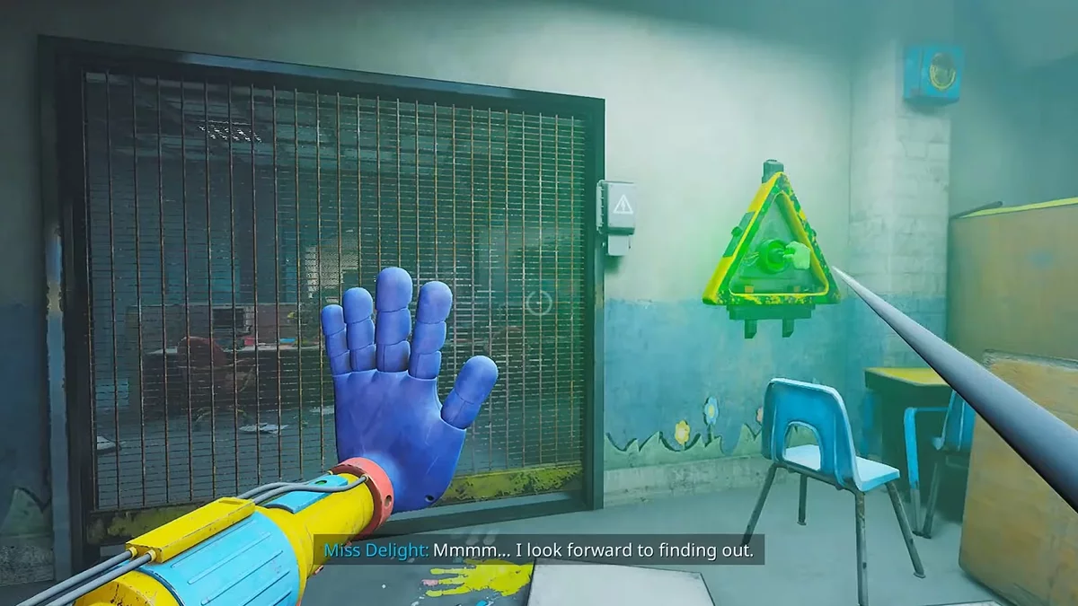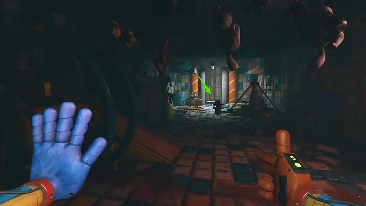 Спуститесь по лестнице пройдите мимо помещения с бассейном в тюрьму. В одной из камер находится DogDay. Посмотрите сцену с этим персонажем, а затем бегите в противоположную сторону, чтобы свалиться в обрыв. Небольшим игрушкам надоело за вами гоняться, поэтому они решили объединиться в теле этой куклы.