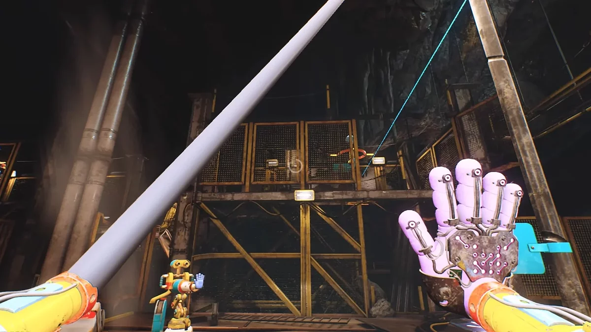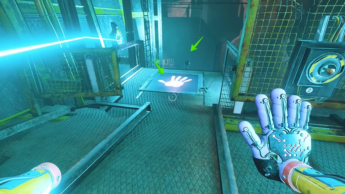 Настраиваем прицел стационарной механической руки, перепрыгиваем на платформу с лифтом и жмем на рычаг.