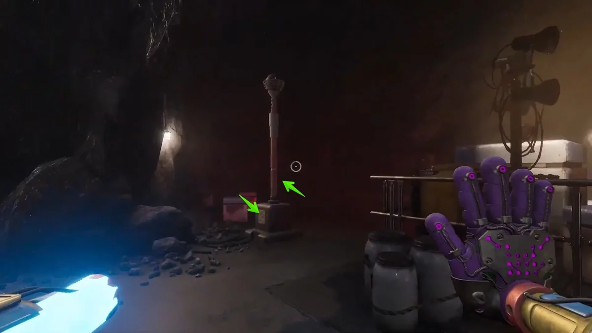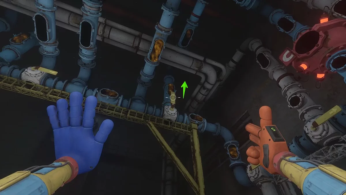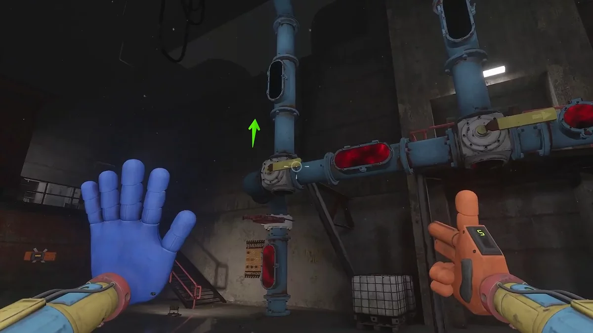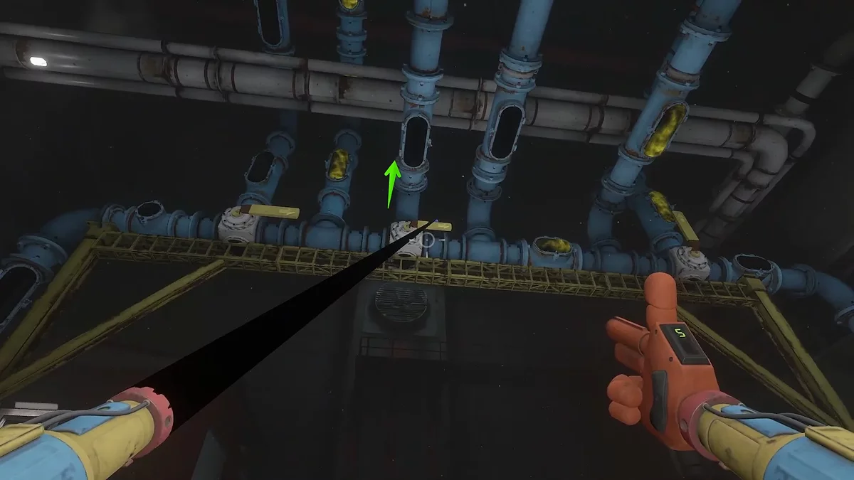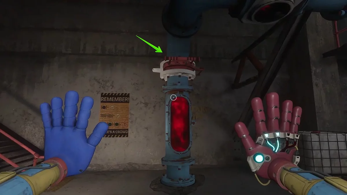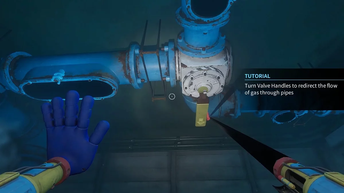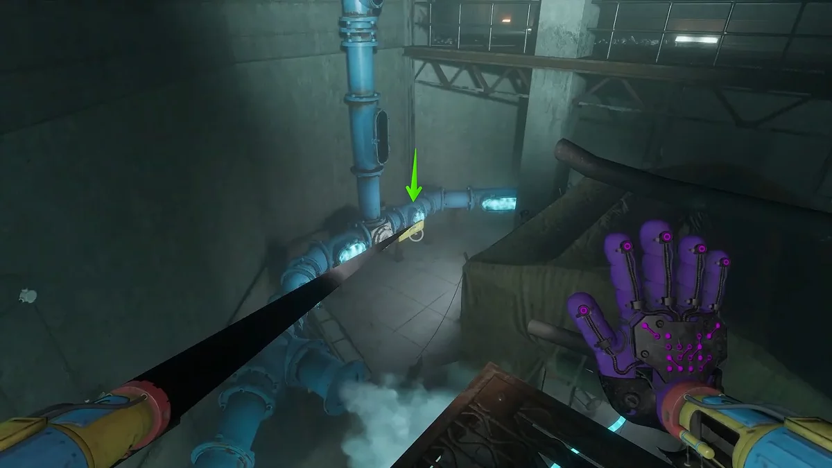 Ворота перед вами откроются. Останется лишь прекратить подачу газа. Для этого взаимодействуйте с подсвеченным элементом в трубе. Поднявшись выше, игроки окажутся в большой комнате. Отсканируйте синюю перчатку на двери. В этот момент левая рука героя будет заморожена и придётся выбираться при помощи только правой перчатки.