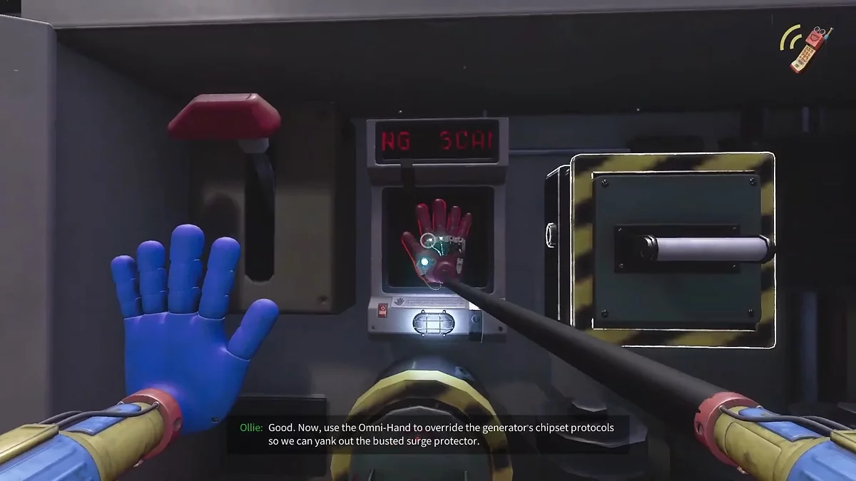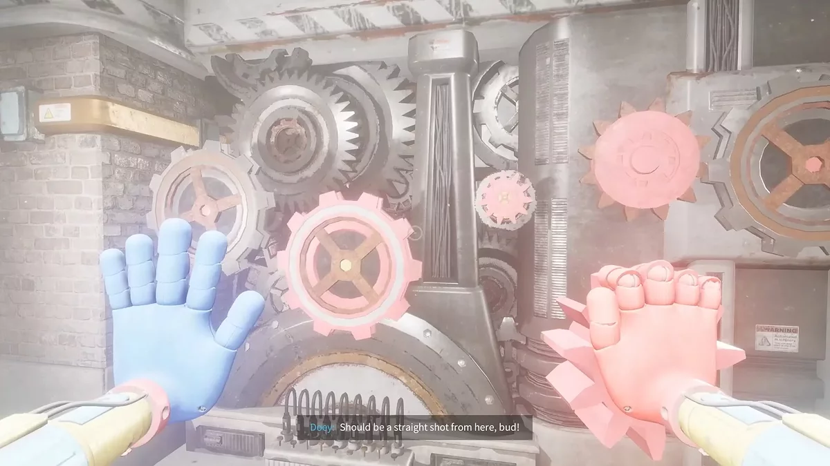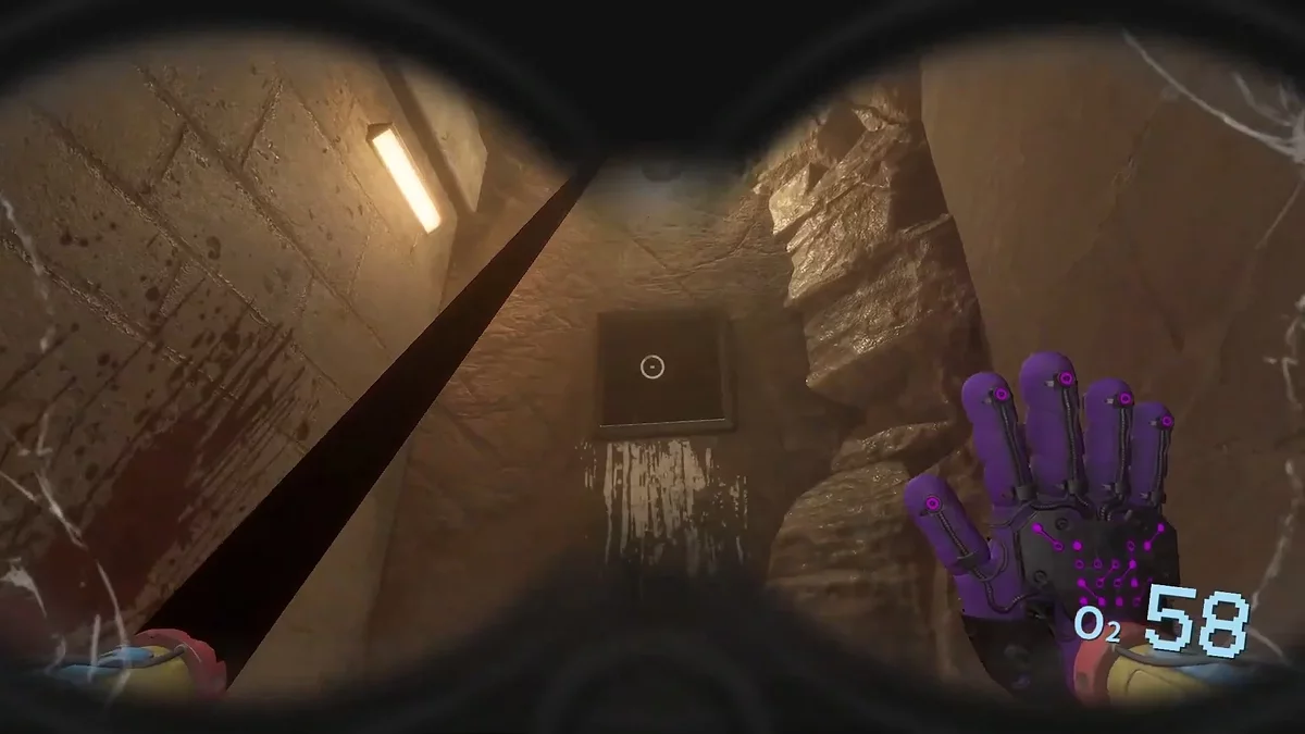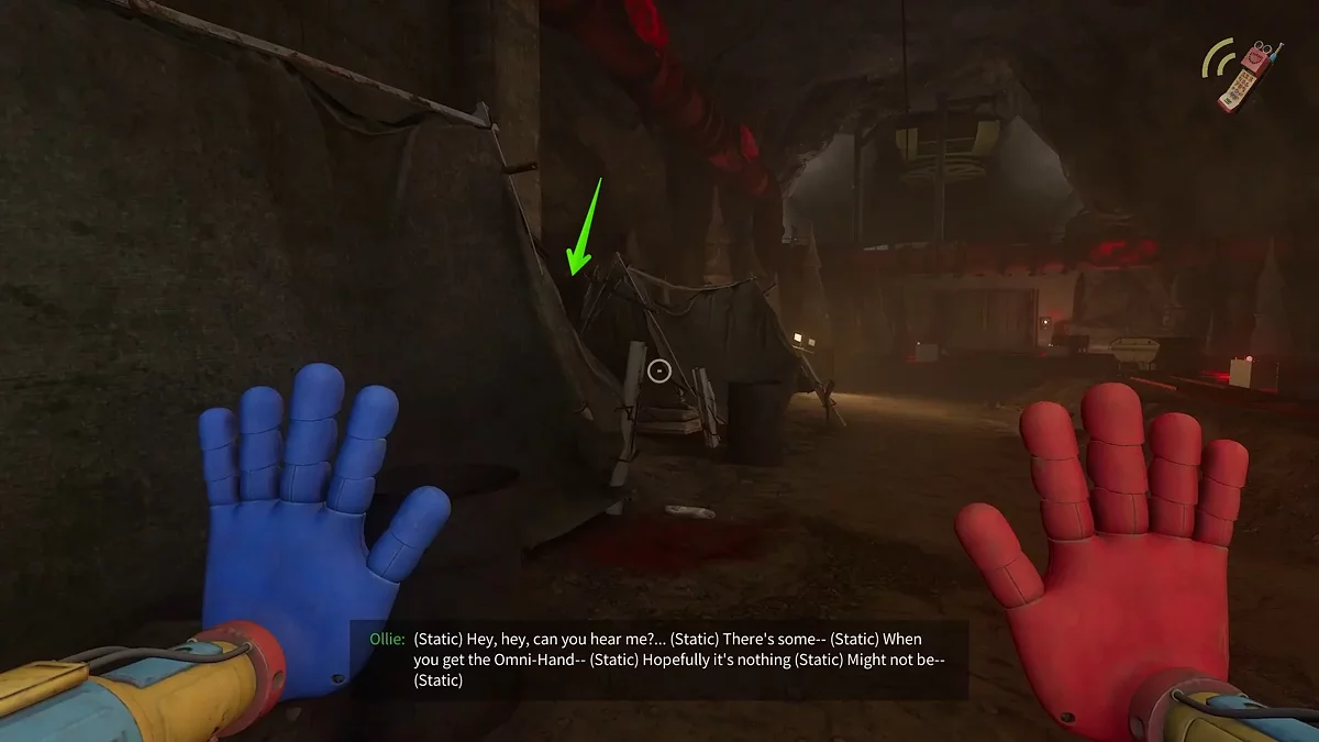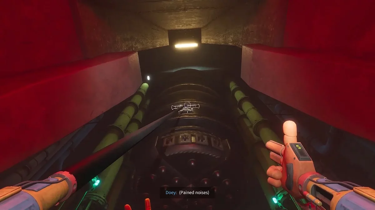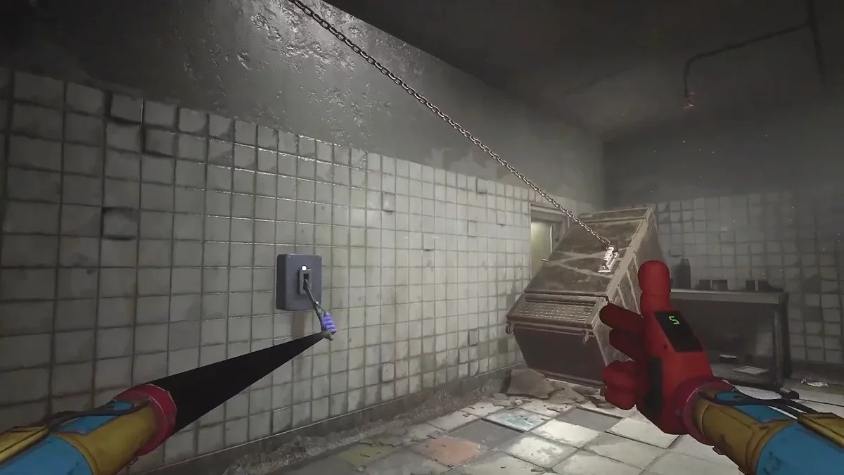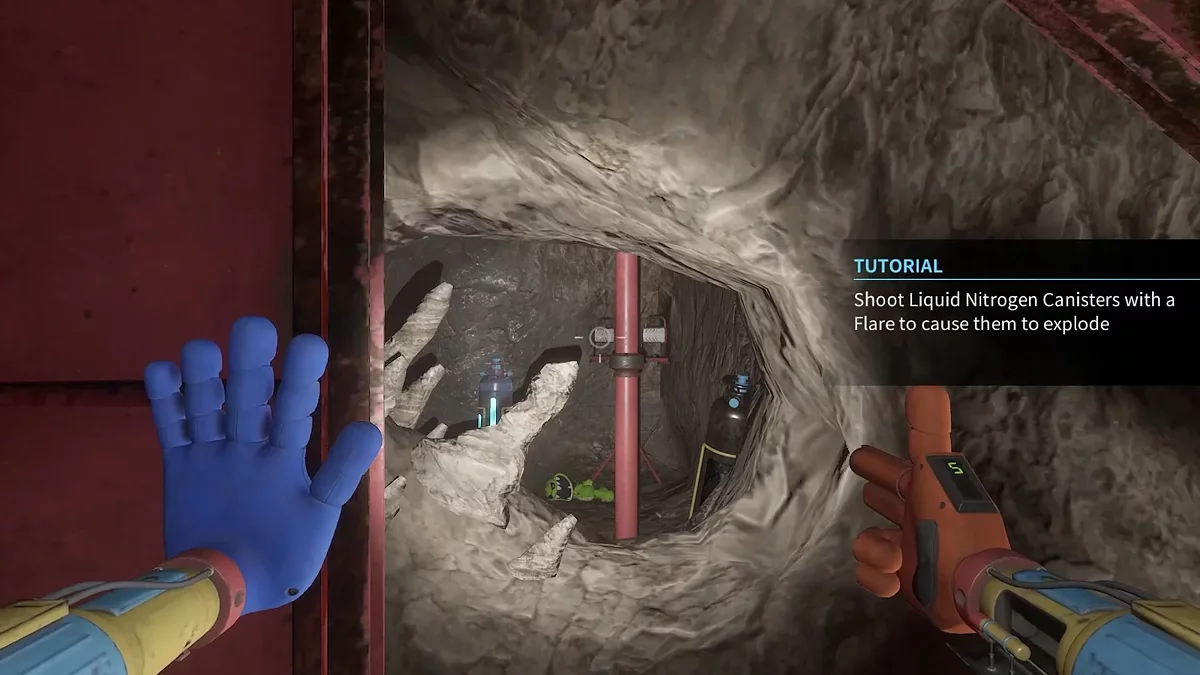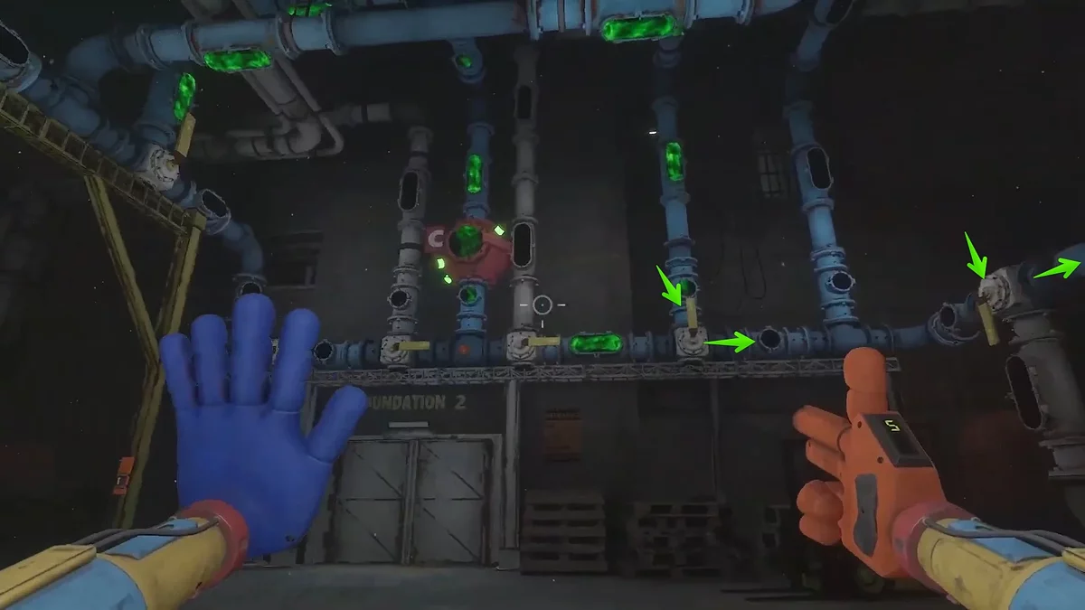 Ворота перед вами откроются. Останется лишь прекратить подачу газа. Для этого взаимодействуйте с подсвеченным элементом в трубе. Поднявшись выше, игроки окажутся в большой комнате. Отсканируйте синюю перчатку на двери. В этот момент левая рука героя будет заморожена и придётся выбираться при помощи только правой перчатки.