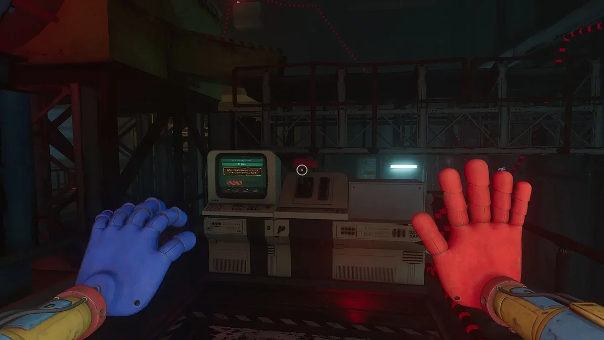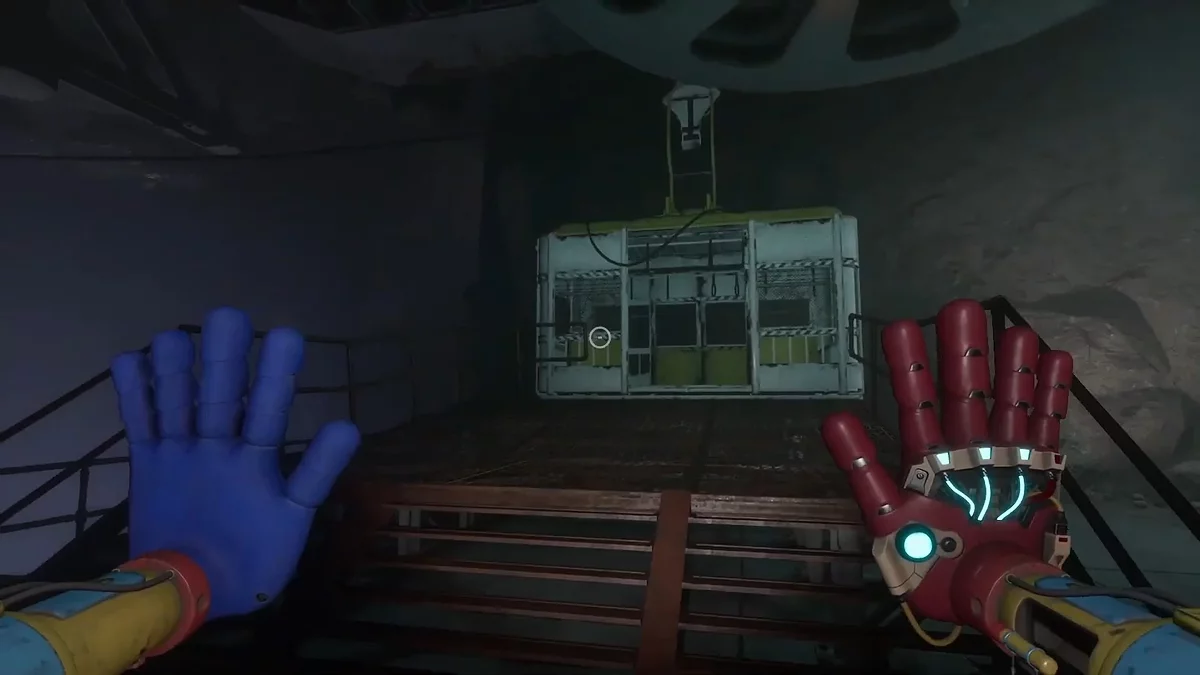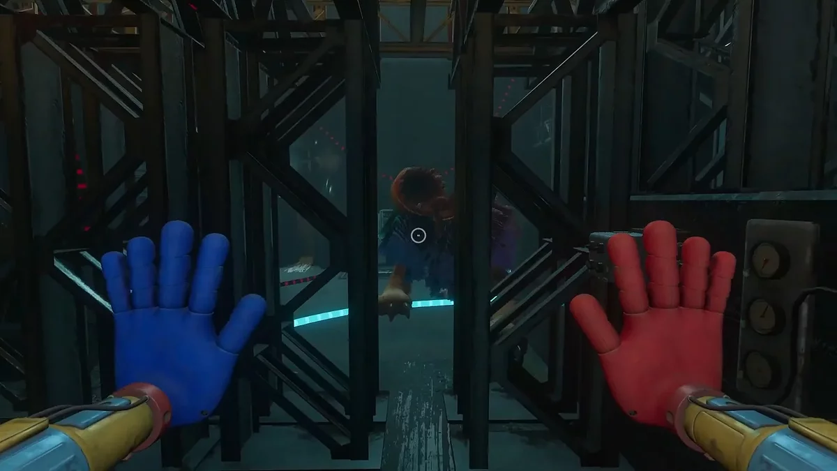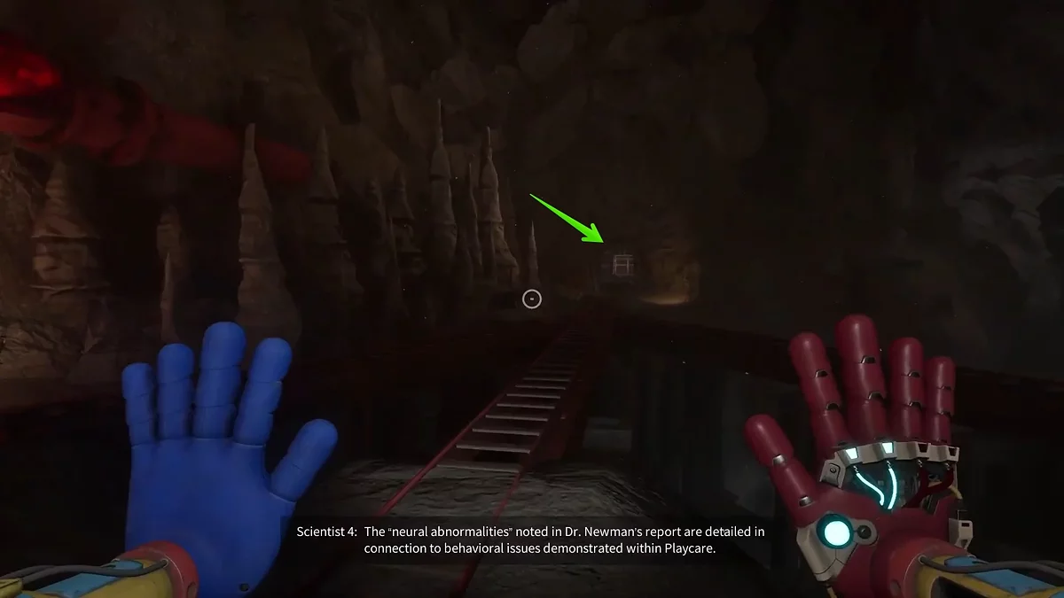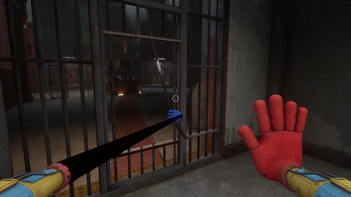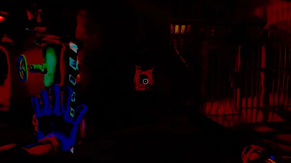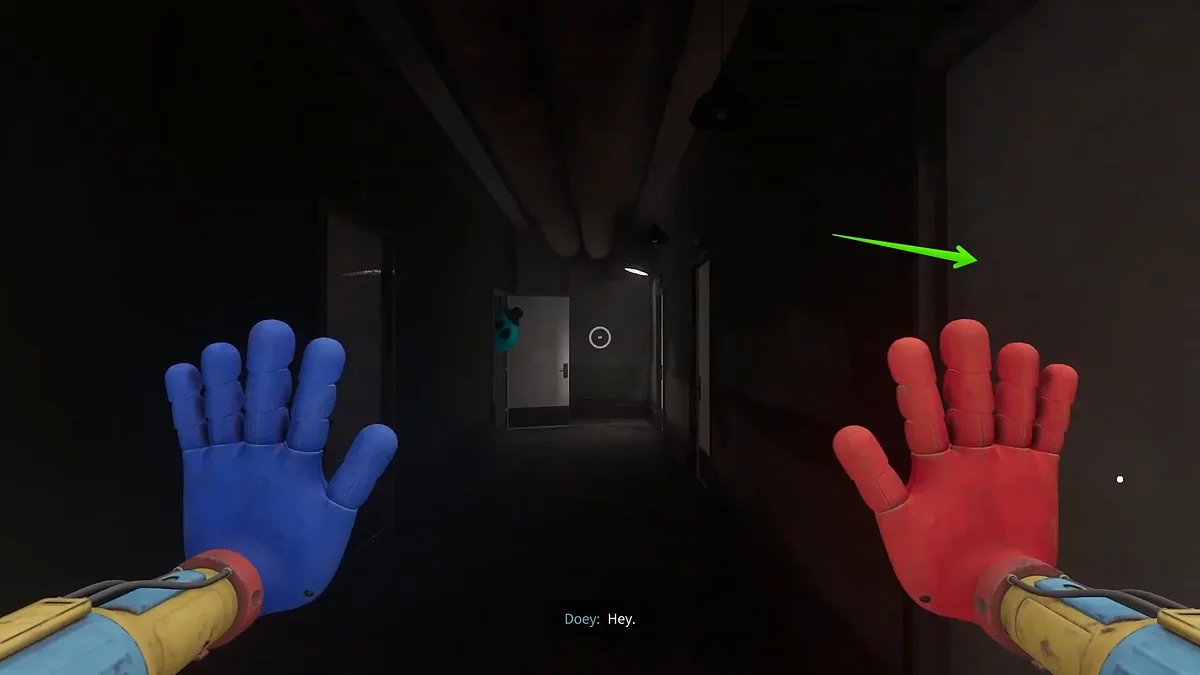 Когда поезд остановится, поднимитесь наверх при помощи зацепа и пройдите по вентиляционной шахте. Откройте дверь синей перчаткой и вернитесь назад. Закройте дверь в камеру с игрушками, а соседнюю дверь слева, наоборот, откройте и спрыгивайте в отверстие в полу.
