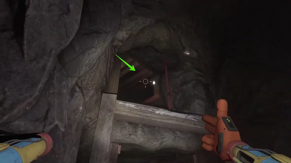 Теперь бегите обратно в шахту и сверните направо на развилке. Слева будет заваленный проход. Пройдите ещё немного вперёд и отыщите пролом в стене. Стреляйте по бочке, чтобы открыть путь в эту область. Так вы получите третью взрывчатку.