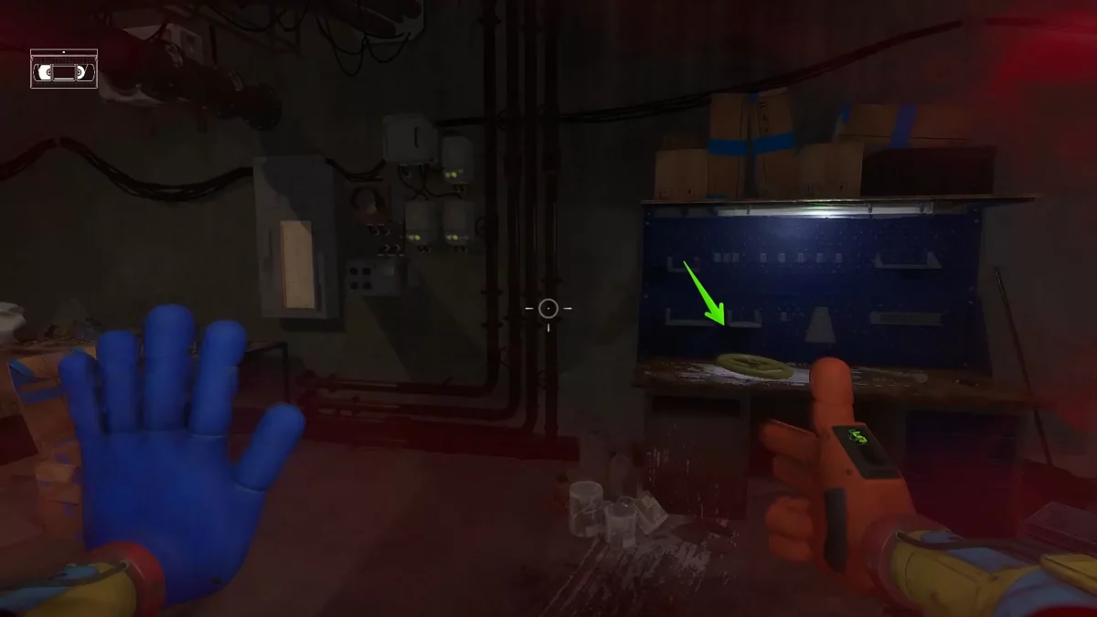 Игроки познакомятся с новым персонажем по имени Доуи, за которым необходимо следовать какое-то время. Поднимитесь выше и пройдите через комнату справа в коридор. Если осмотреть центральную дверь, вы найдёте желтую видеокассету. Проигрыватель можно обнаружить в следующем коридоре, если открыть первую дверь справа и отодвинуть куб от отверстия в стене.