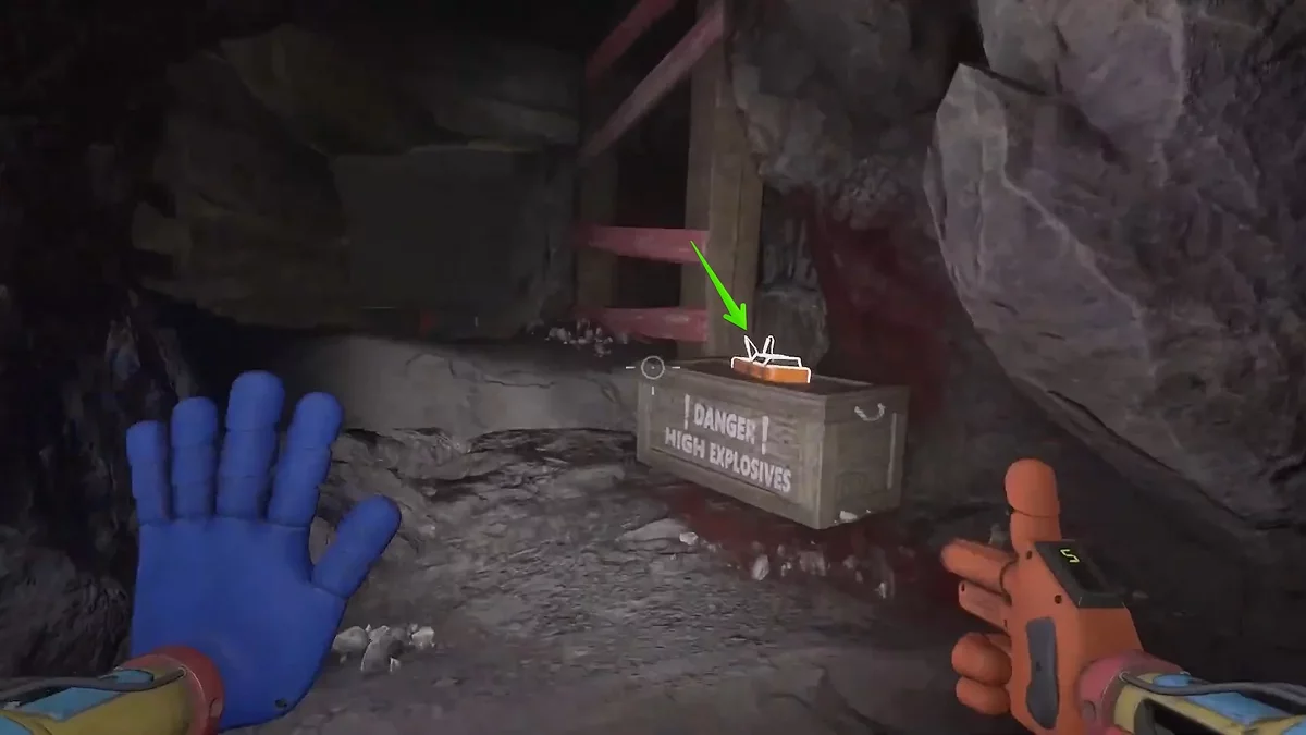 Первая взрывчатка будет прямо перед вами, когда игрок войдёт в шахту. Немного дальше есть передвижная платформа. Двигайте её к тупику, где есть подъем, а затем забирайтесь выше. Здесь вторая взрывчатка.
