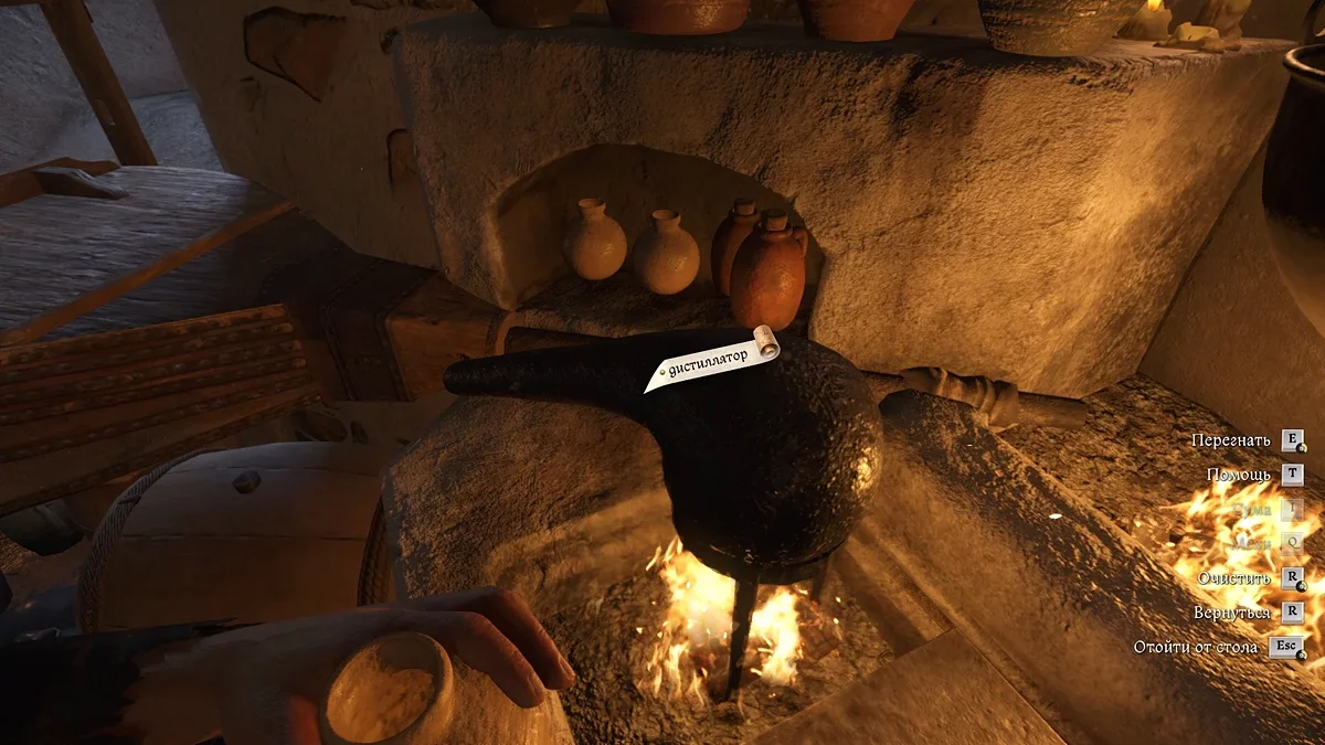 - Снимите чан с огня, возьмите колбу слева на полке и перелейте зелье в неё.