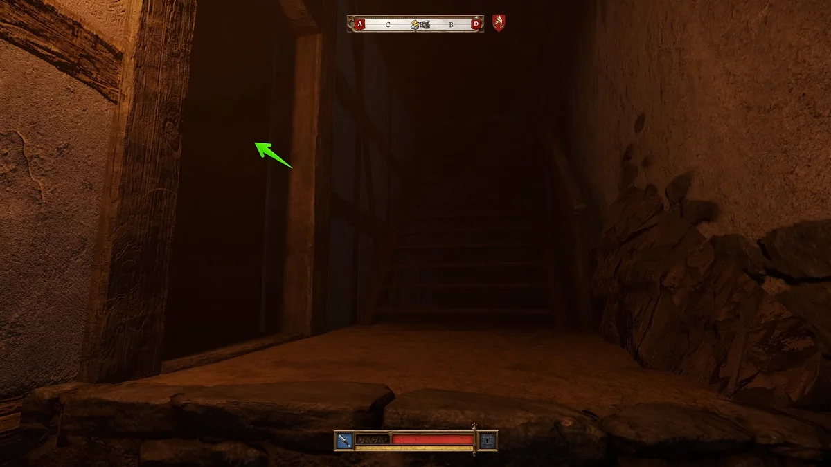 Сделав это, используйте проход в стене слева, чтобы попасть в переулок, который выведет вас к конюшням. Здесь только один враг, так что можете избавиться от него и взаимодействовать с лошадью.