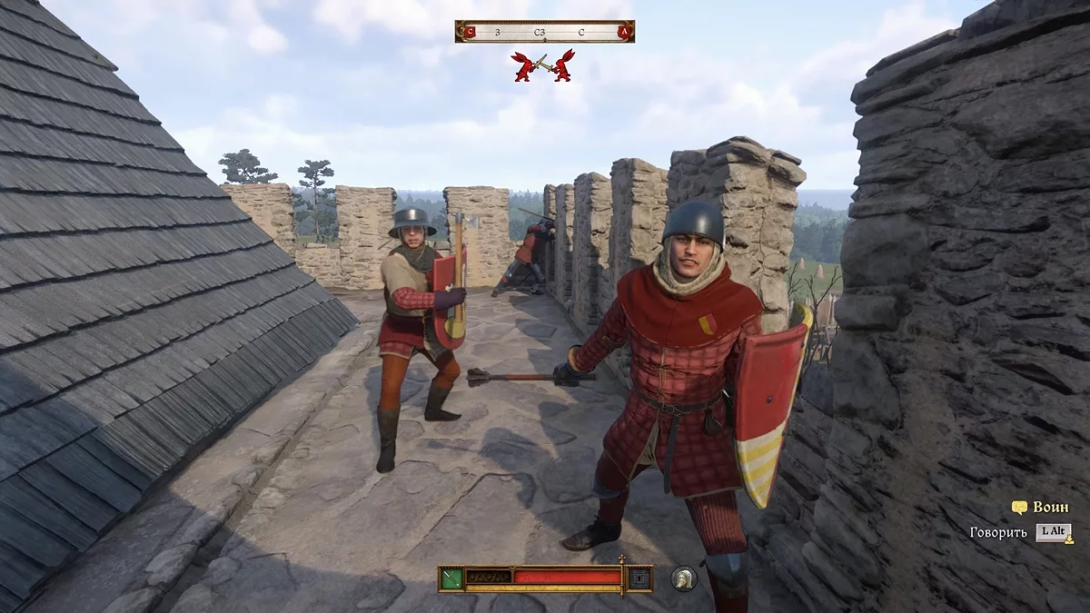 Когда основные силы противника будут повержены, Индржиха подзовет один из воинов. Следуйте за ним к лестнице и забирайтесь наверх. На стенах крепости вас встретит серьезный противник Лампрехт из Праги, которого можно убить несколькими выстрелами в голову из лука или арбалета, чтобы сэкономить время.
