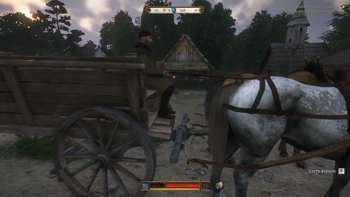 Побеседовав с ним, поспите или подождите до 6 утра, затем снова отправляйтесь к нему. Садитесь в повозку, после чего начнётся самое интересное. Дело в том, что если вы будете неправильно отвечать или совершать неверные действия, он просто спешится и пойдёт домой пешком, а игрокам придётся самостоятельно искать селитряную яму.