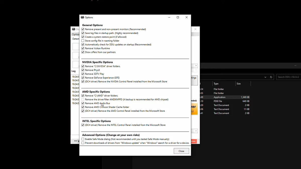 Отметив необходимые вам настройки в зависимости от вашего графического ускорителя, выбирайте видеодрайвер и его производителя. Теперь можно запустить процесс очищения. Обратите внимание, что более подходящим является первый режим, ответственный за удаление и перезагрузку. Выбирать второй вариант не рекомендуется, равно как менять настройки и оставлять сохраненными некоторые параметры.