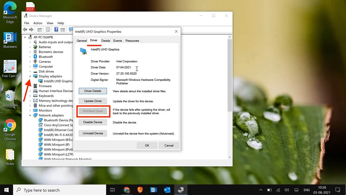 Существует и другой способ: дважды кликните по названию видеокарты, затем перейдите в раздел «Драйвер» во всплывшем окне и активируйте нижнюю кнопку в списке.