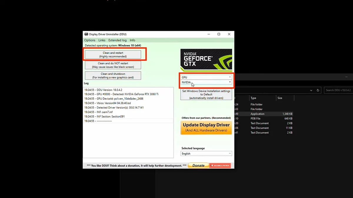 Для наибольшей эффективности рекомендуется использовать её в безопасном режиме. Вы можете посмотреть, как его активировать, в нашем гайде или же воспользоваться опцией автоматической перегрузки в Display Driver Uninstaller.
