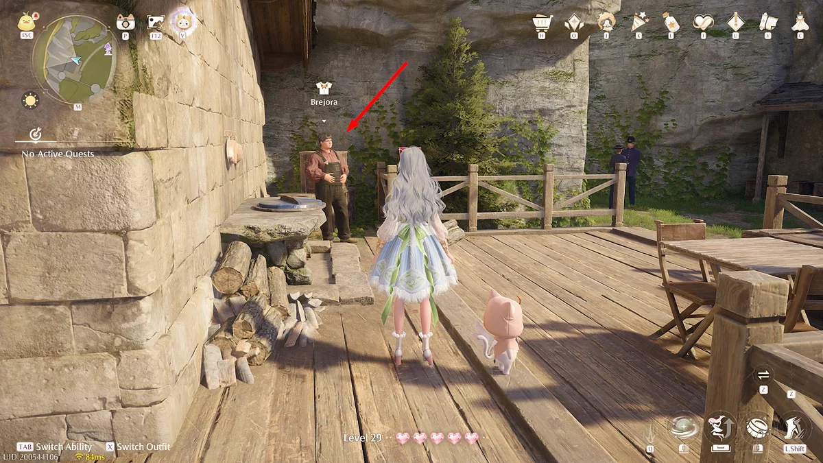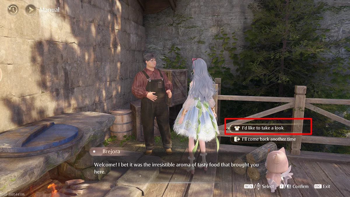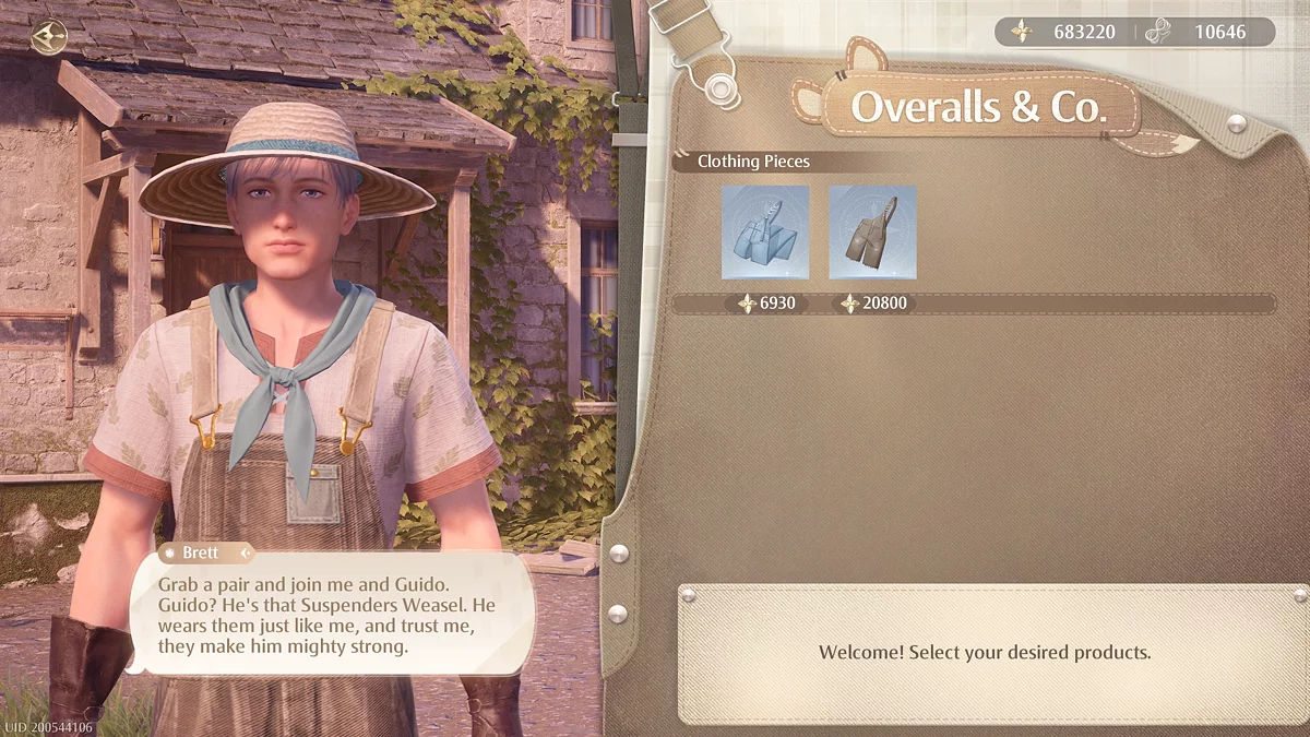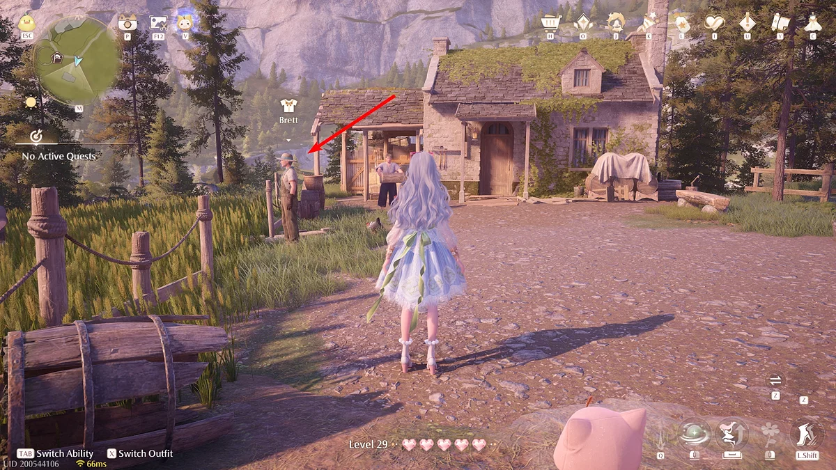 Воспользуйтесь варп-шпилем на Деревенской развилке и двигайтесь к югу. Поднимитесь по многоуровневой скале вверх и пройдите по дороге прямо до одинокого домика на вершине, указанного на скриншоте выше. У забора вы обнаружите юношу в шляпе по именни Бретт. Поговорите с ним, чтобы перейти в магазин. В нём вы сможете найти два предмета одежды: два комбинезона светло-голубого и коричневого цвета на одной лямке. Приобрести их можно также за определённое количество блингов.