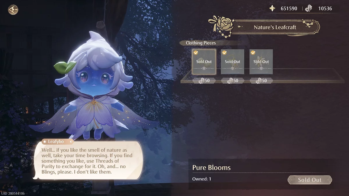 Вернитесь к телепорту и от него, не спускаясь, сразу поверните направо. Вы увидите значок и имя продавца — Лифибо. Поговорите с ней, чтобы открыть доступ к ассортименту магазина, среди которого есть серёжки, браслет и брошь с цветочным мотивом. Все эти вещи можно также купить на местную валюту, блинги.