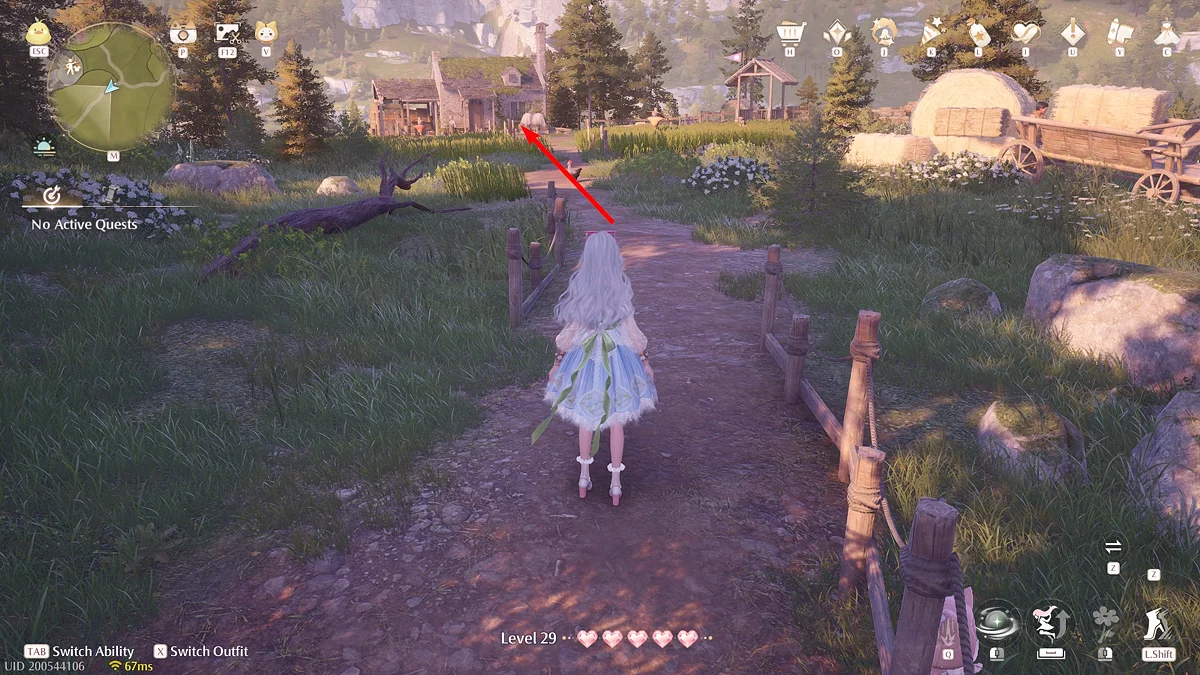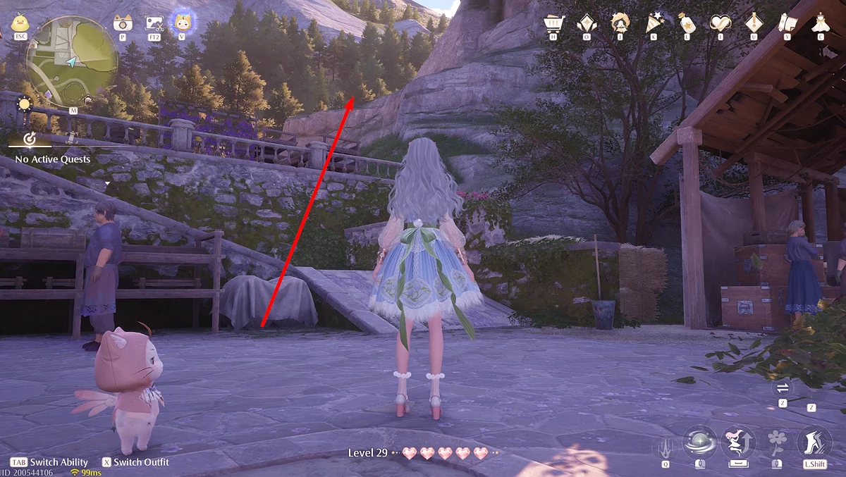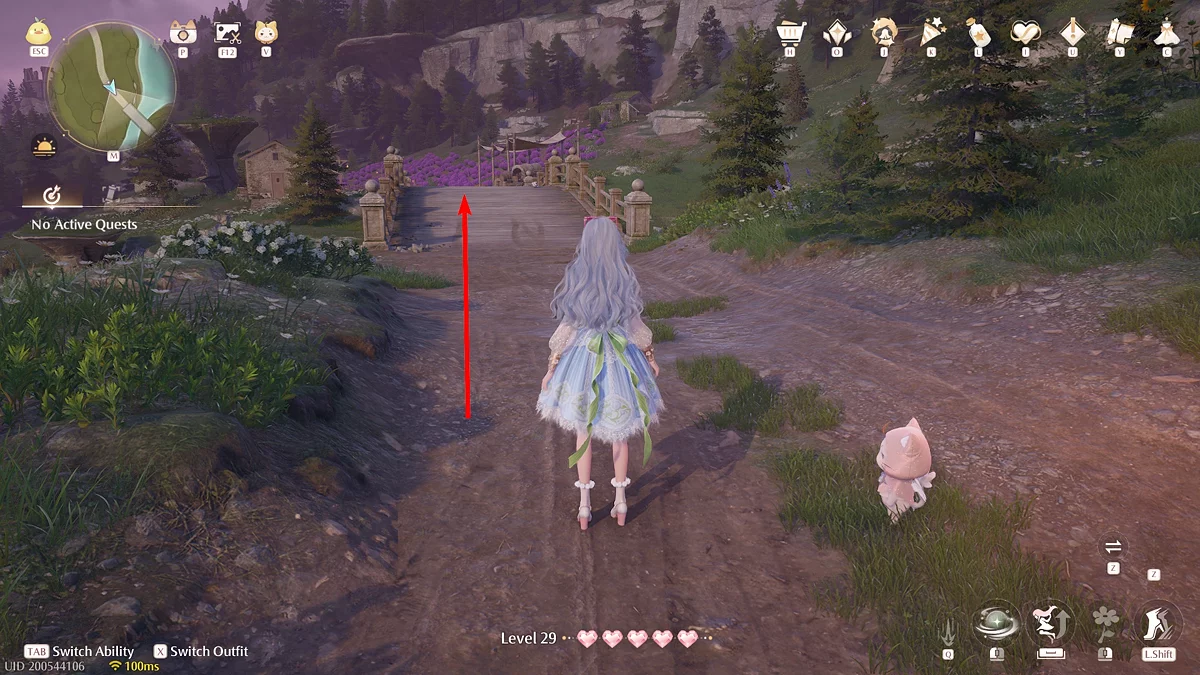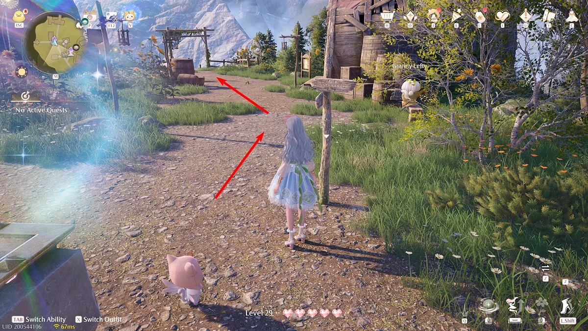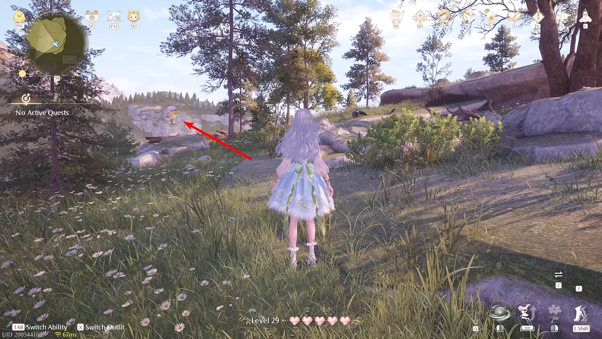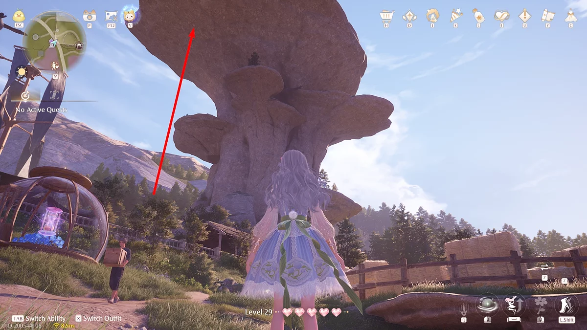 Затем перепрыгните через другие уровни по кругу, перейдите на более высокую платформу по упавшему стволу дерева и наконец заберитесь на самый верх с помощью батутов-сеток. Там вы встретите продавца по имени Кокетливая Фея и поговорив с ней, откроете доступ к ассортименту. Фея также продаёт две вещи: блузку лавандового цвета и босоножки за блинги.