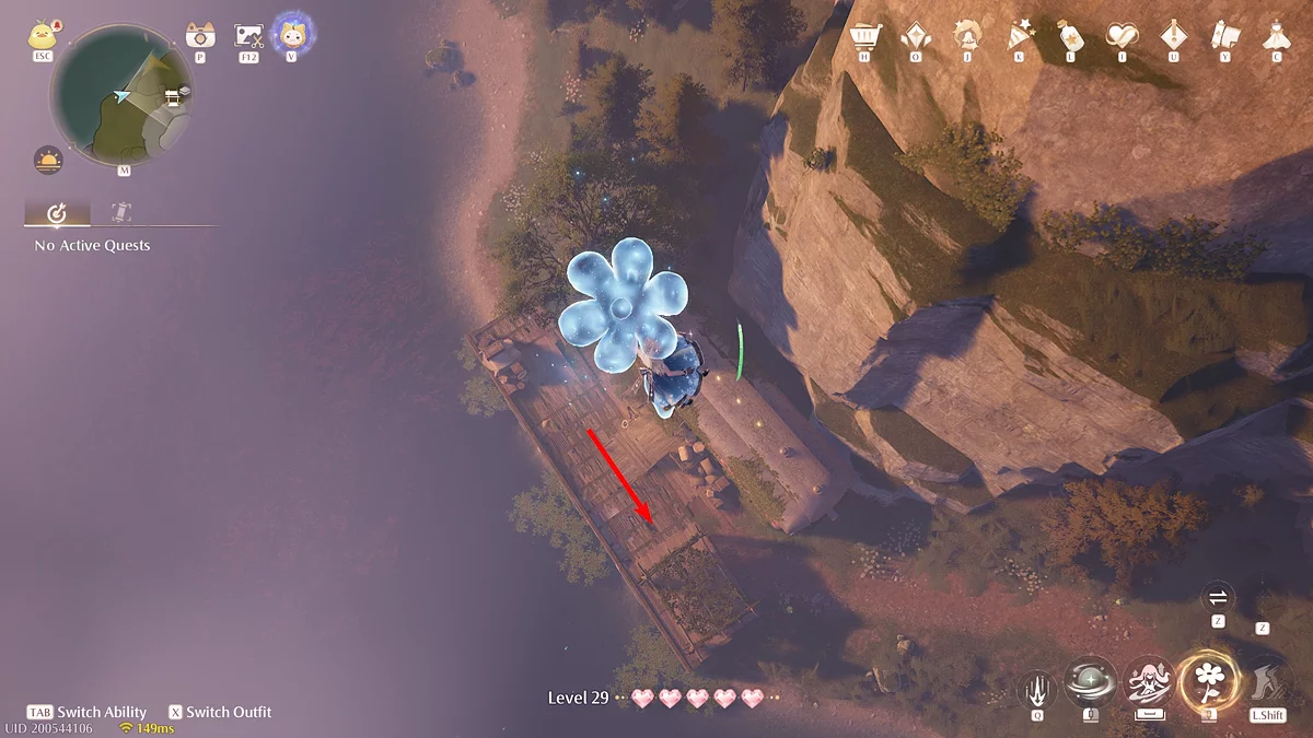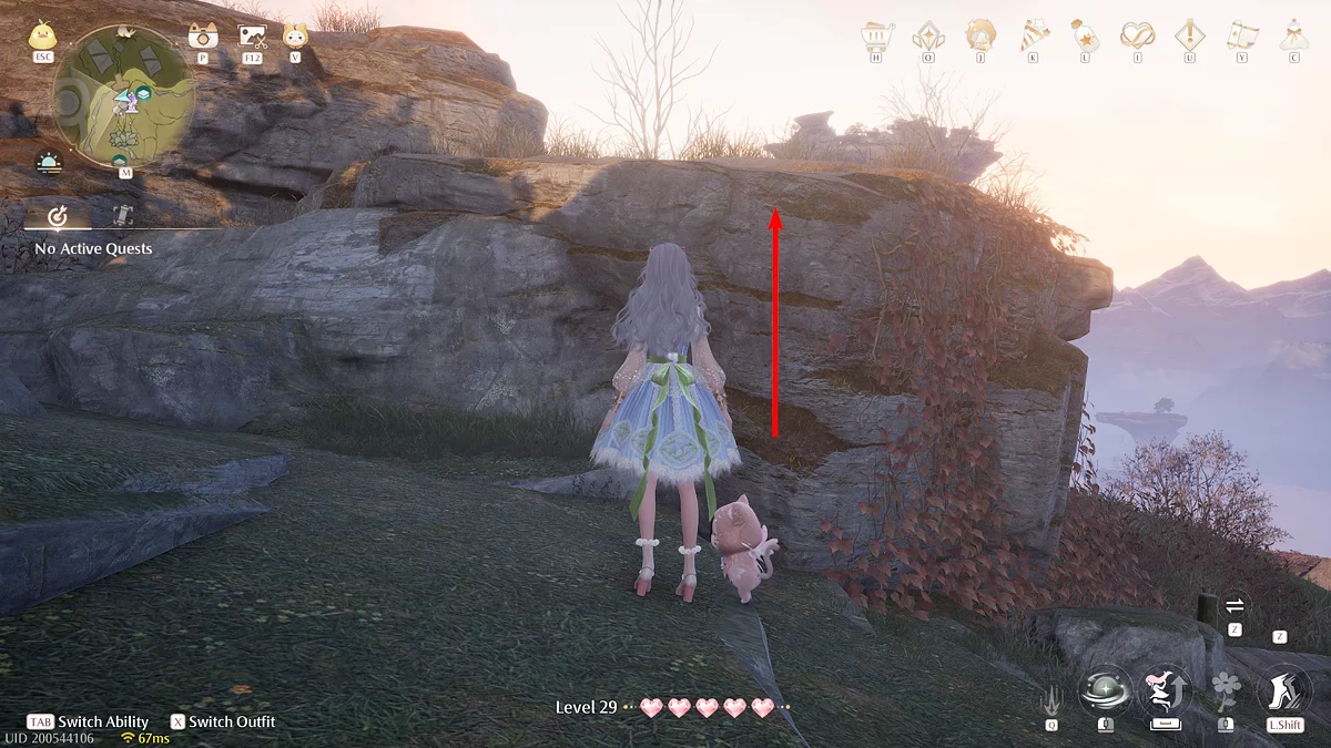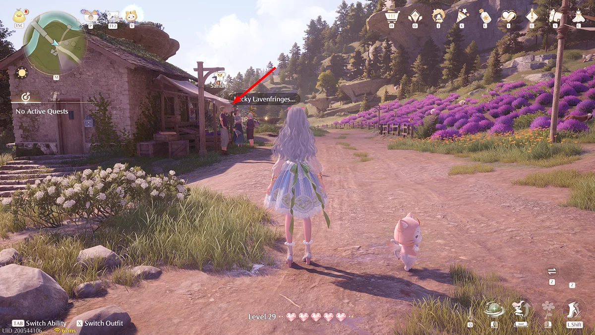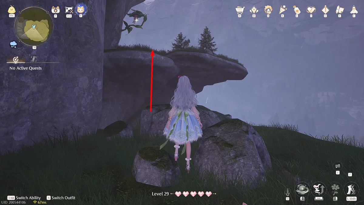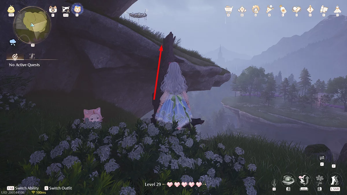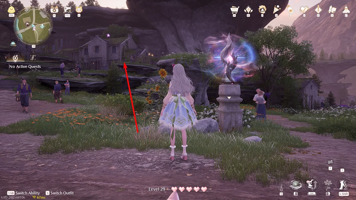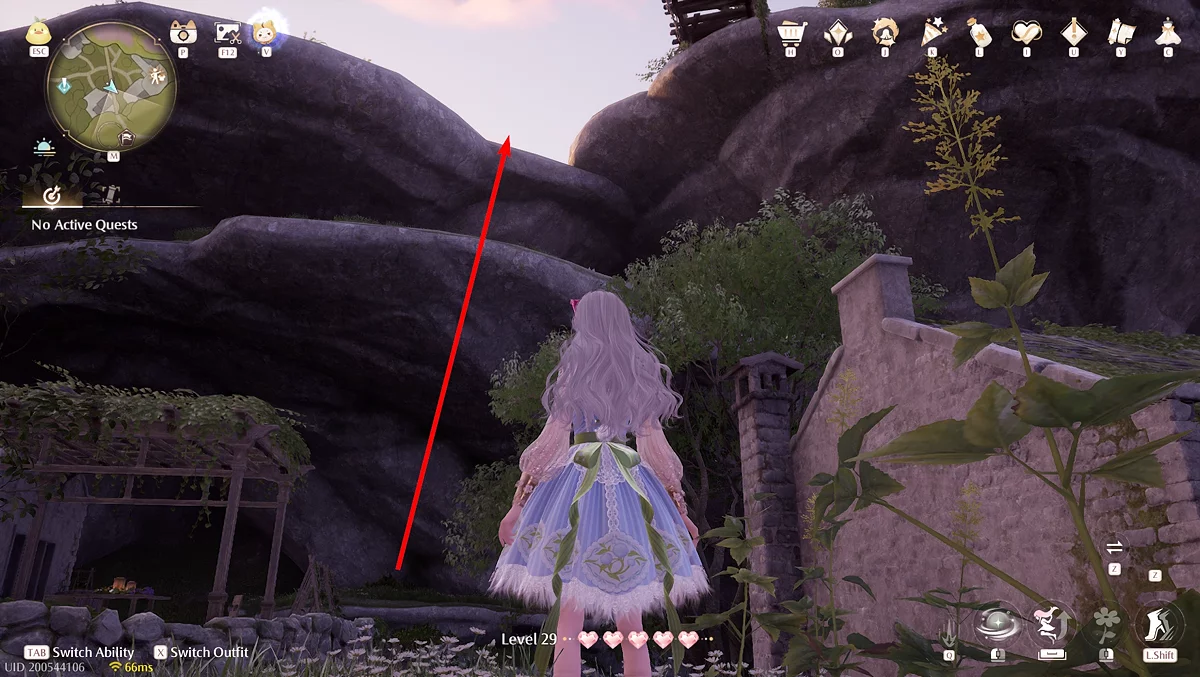 Попасть в этот магазин одежды можно, если телепортироваться к Лавандовым полям и забраться на самый верх каменной платформы. От телепорта подбегите к подножью платформы и обегите его по кругу, пока не увидите небольшое место, куда можно запрыгнуть. После чего запрыгните на листок изумрудного цвета — с помощью вы можете высоко подпрыгнуть и добраться до уровня повыше. Там вы снова увидите подобный листок.