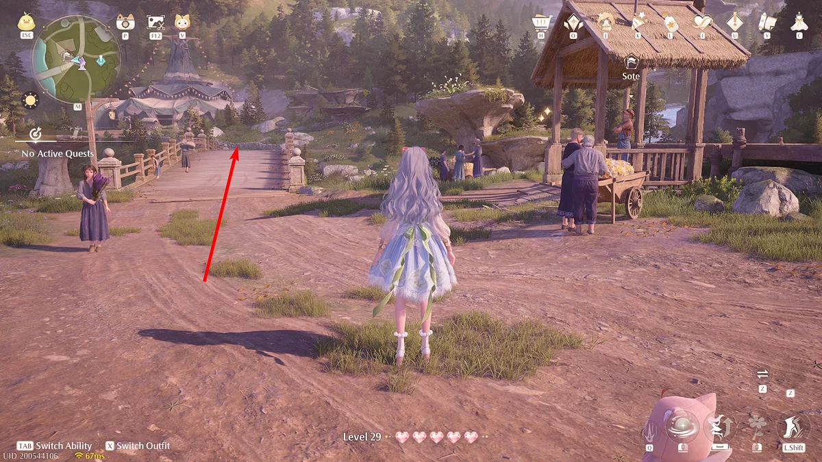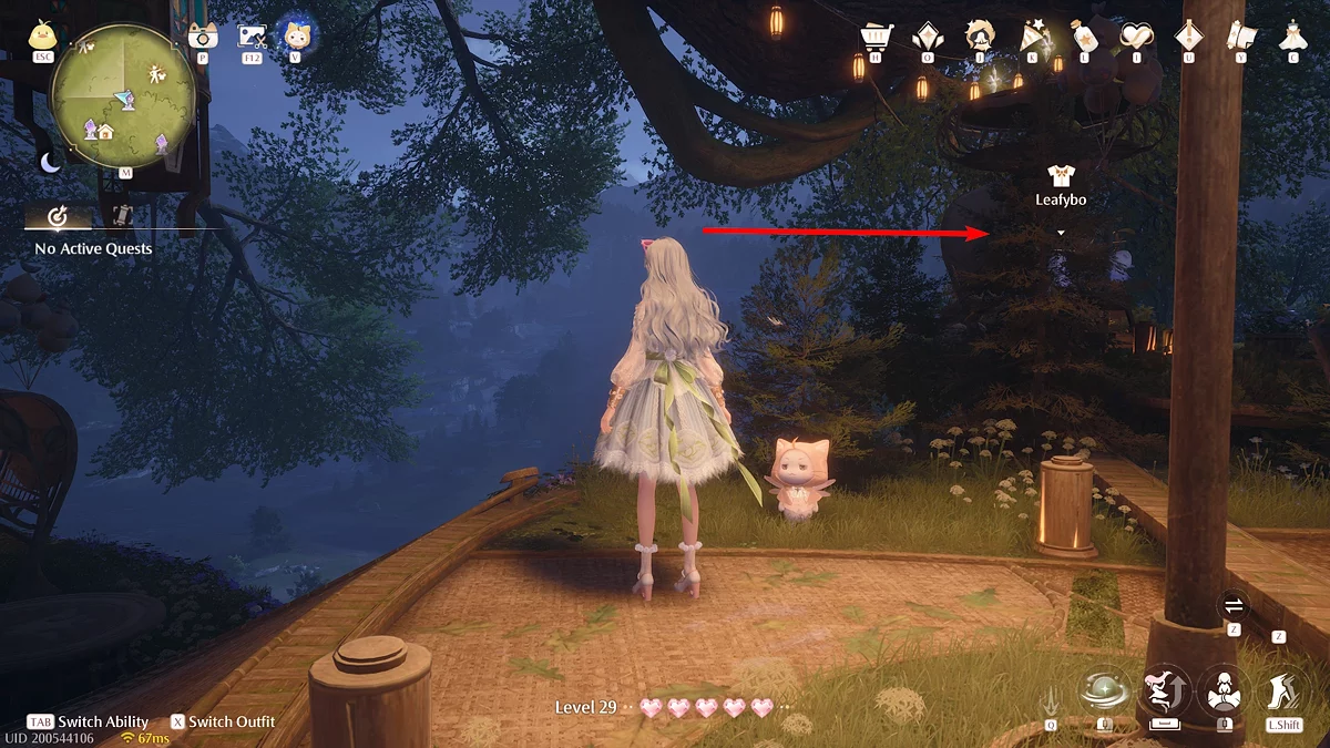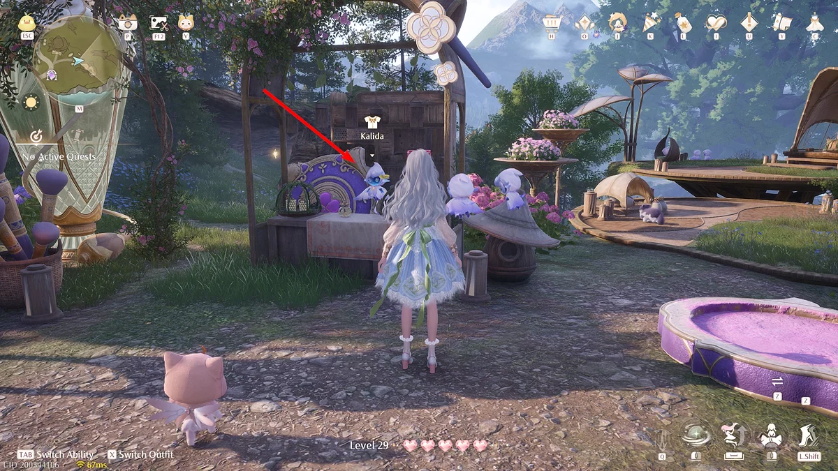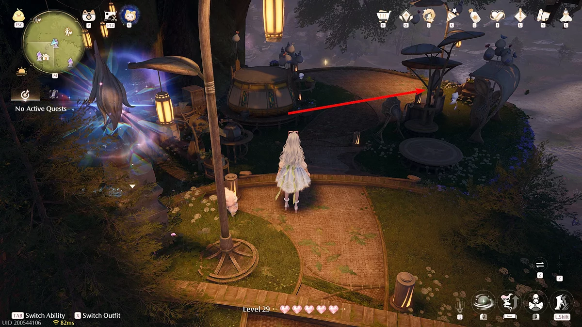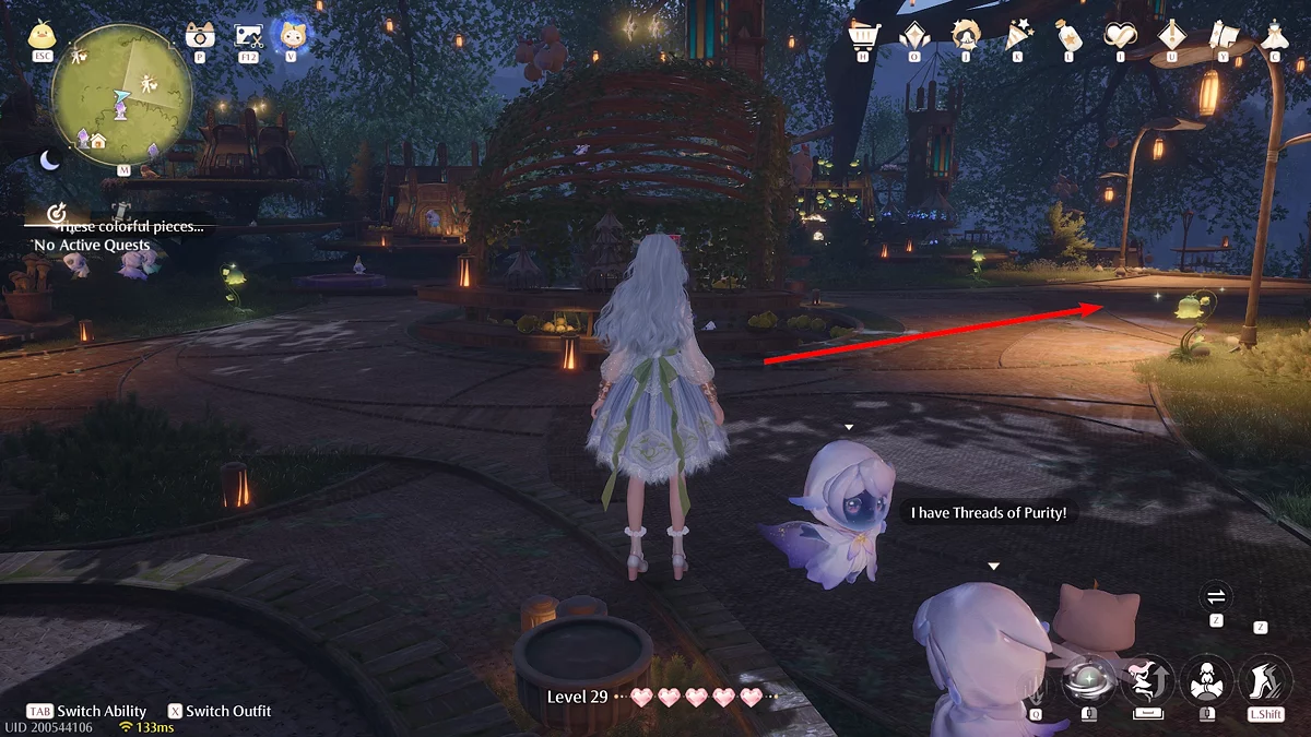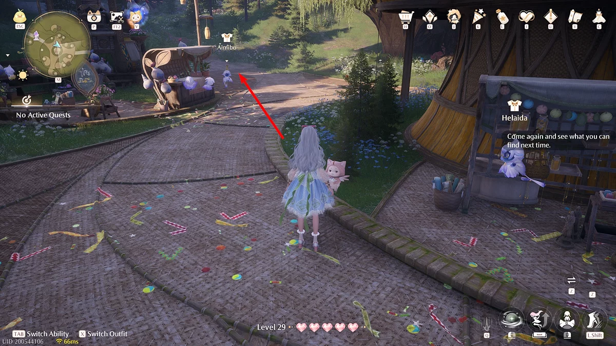 Пройдя от предыдущего магазина с аксессуарами по диагонали, вы увидите последний бутик в Лесу Желаний. Поговорите с духом Аймибо, чтобы получить доступ к ассортименту лавки и сможете приобрести цветочную сумку, розовый флажок и игрушечный меч.