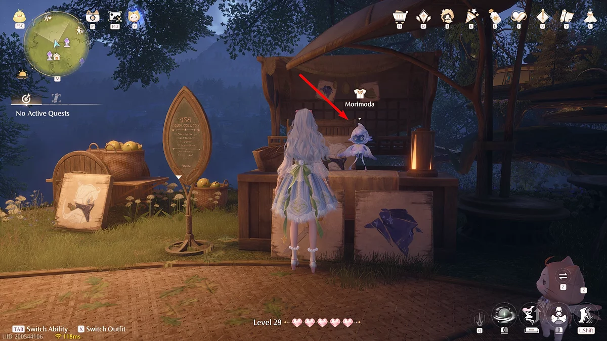 Этот и другие два магазина можно отыскать на территории Долины Великого Дерева. Телепортируйтесь к Жилому району Большого Дерева и спуститесь на соседнюю платформу по мосту. Сразу справа вы увидите лавку Моримоды. Поговорите с духом, чтобы открылся магазин. У двуха вы сможете купить аксессуары, напоминающие компаньона Никки — Джироду. Среди вещей есть фирменный рюкзак из листьев, кулон с мечом и шарф.