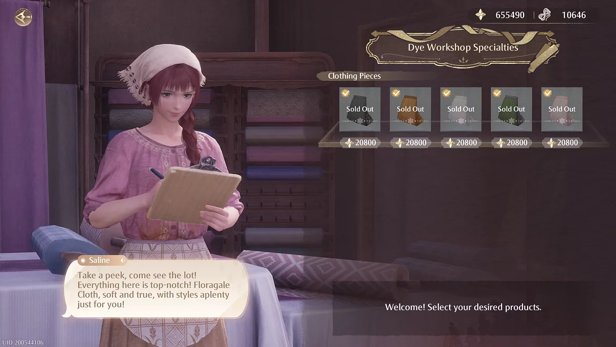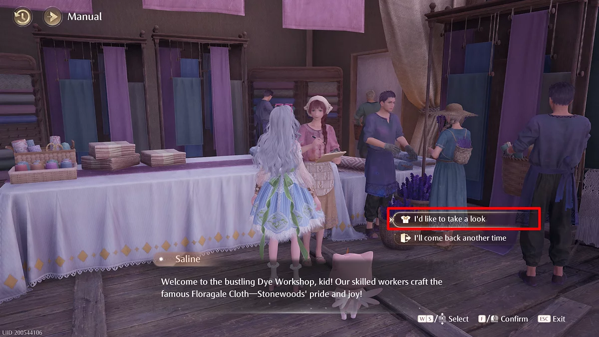 Вернитесь к предыдущему телепорту и перейдите мост, после чего продолжайте идти на запад. Идите к цирковому шатру и обойдите его по кругу. Там вы наткнётесь на девушку по имени Салин, которая и откроет доступ к товарам в бутике «Dye Workshop». Среди ассортимента магазина — длинные юбки похожего кроя и разных цветов, от изумрудно-зелёного до белого с лавандовыми узорами. Их все можно прикупить за фиксированную сумму в 20 800 блингов.