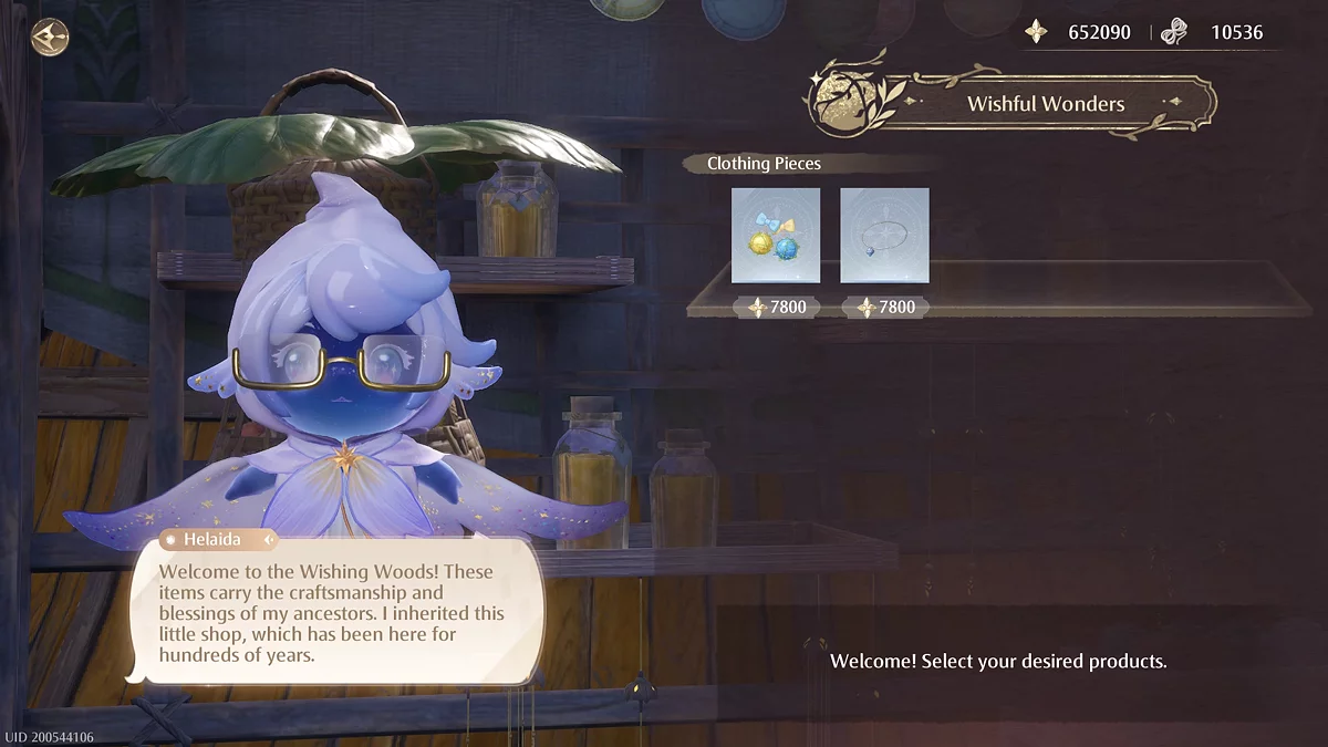 Последние два бутика в Лесу Желаний можно отыскать на территории Центра Празднования Желаний. Воспользуйтесь одноимённым телепортом и пройдите вперёд по дорожке, после чего поверните налево и увидите лавку духа по имени Гелаида. Она продаёт коллекцию украшений, состоящих из серёжек и кулона по 7800 блингов.