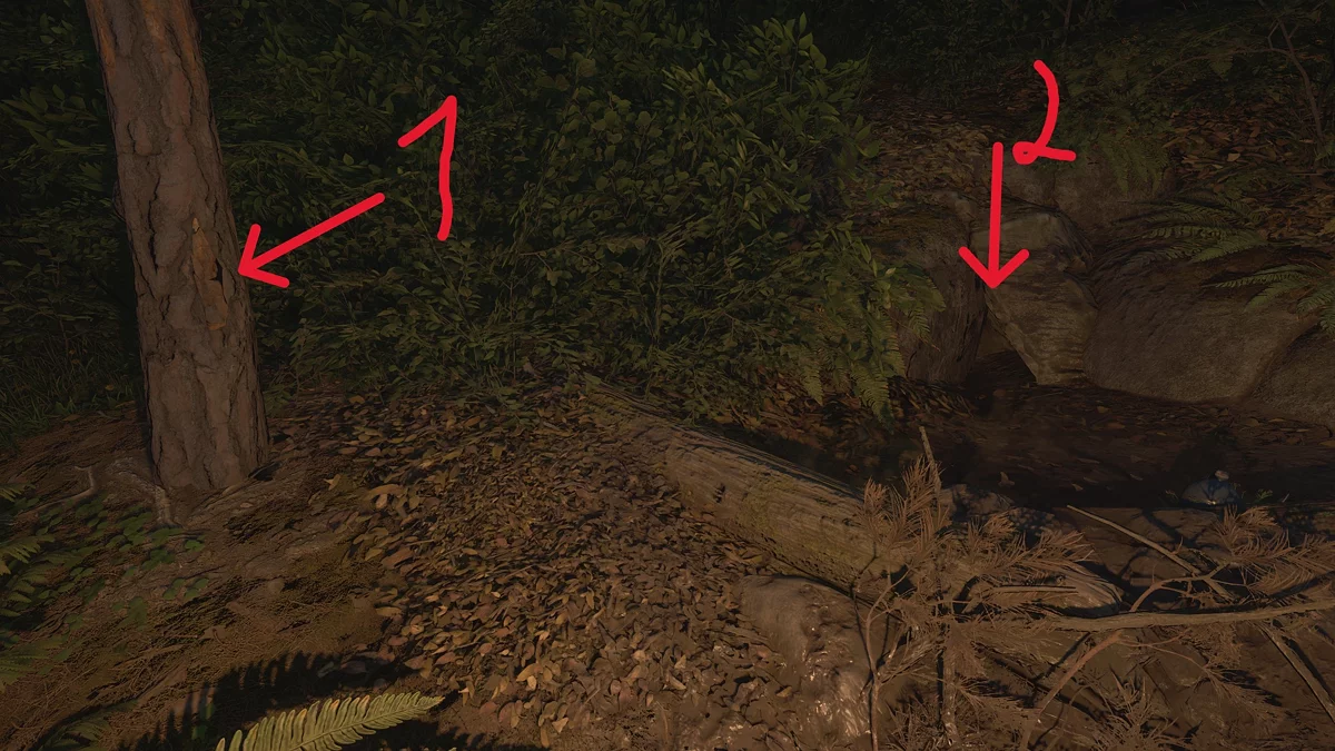 Пройдите под камнем и следуйте по тропе. С правой стороны вы увидите расщелины в скале и следы крови.