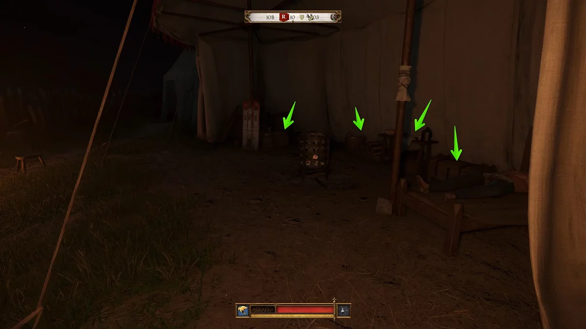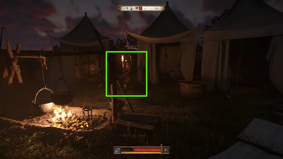 Первым делом проберитесь в лагерь Сигизмунда. Можете пройти проверку навыков, заплатить нужную сумму или начать выполнение побочного квеста «Утраченная честь». В последнем случае вам даже не нужно завершать его — доступ в лагерь будет открыт.