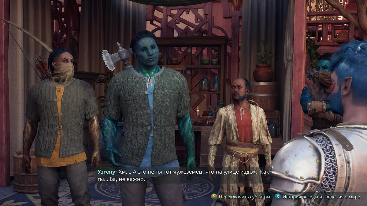 Лавка аптекаря находится совсем недалеко. Когда вы подойдете, увидите, что у него конфликт с местными бандитами. В ходе диалога у нас не получилось решить вопрос мирно, однако это, очевидно, возможно. На шум битвы пришел лидер бандитов — огромный огр, а также все его подчиненные во всем районе начнут с вами драться.