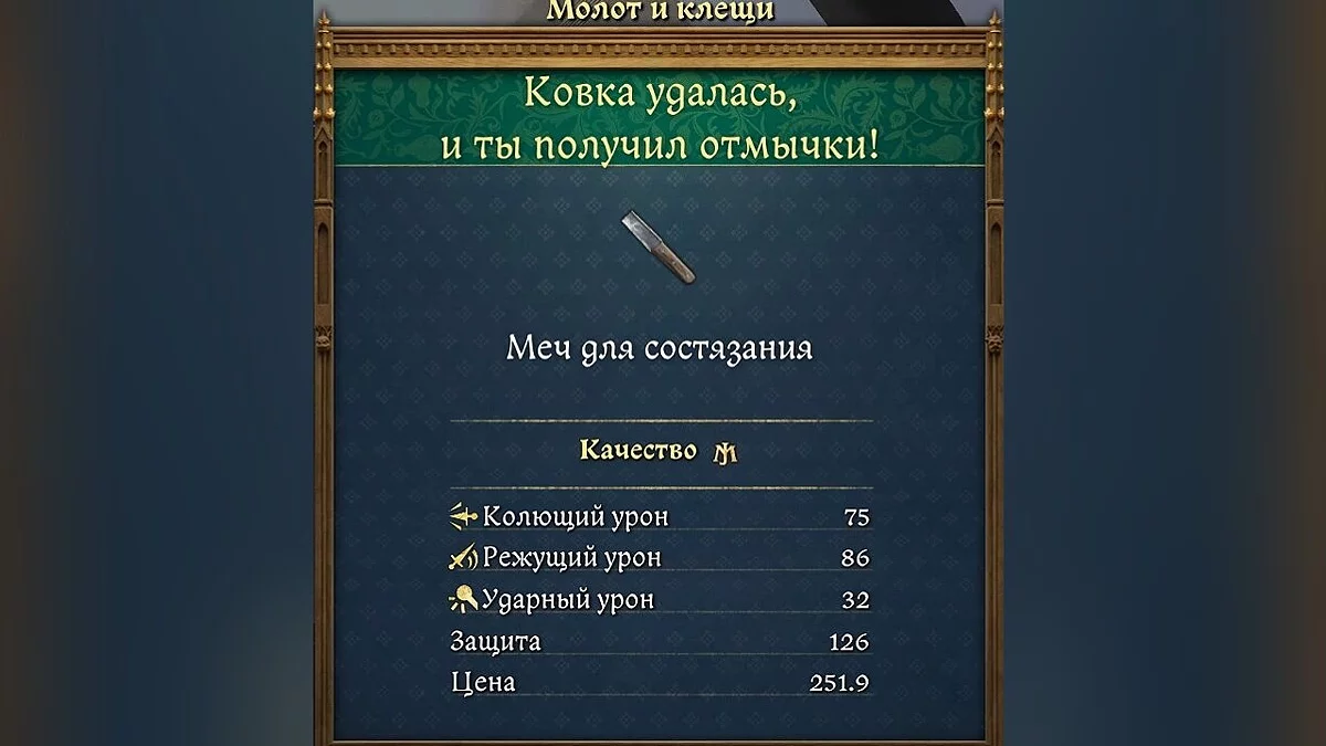 Кузнецу Здмиру предстоит увидеть меч для состязания, который вы выковали. Внимательно изучив ваше творение, он будет восхищён мастерством и признает, что вы заслуженно одержали победу в споре. После этого Здмир порекомендует вам отправиться на обучение к искусному оружейнику Микулашу Кронделю в Кутнта-Горе, чтобы продолжать совершенствовать свои навыки.