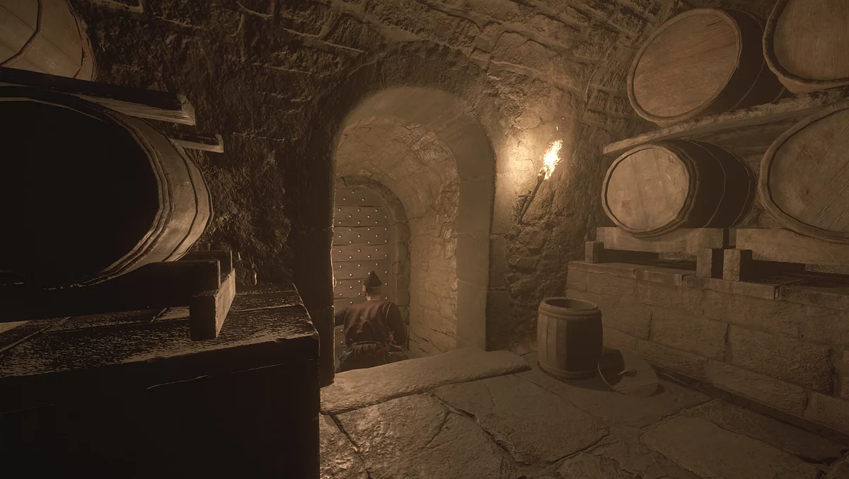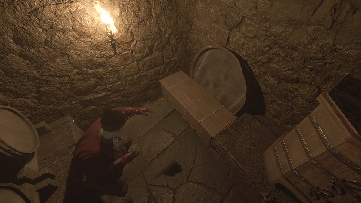 Пройдите в погреб, следуя за кухаркой, которая находится в подвале главного дома виноградников. Помните, что ваше присутствие здесь незаконно. Взломайте дверь слева и найдите внутри сундук. Достаньте из него серные фитили.