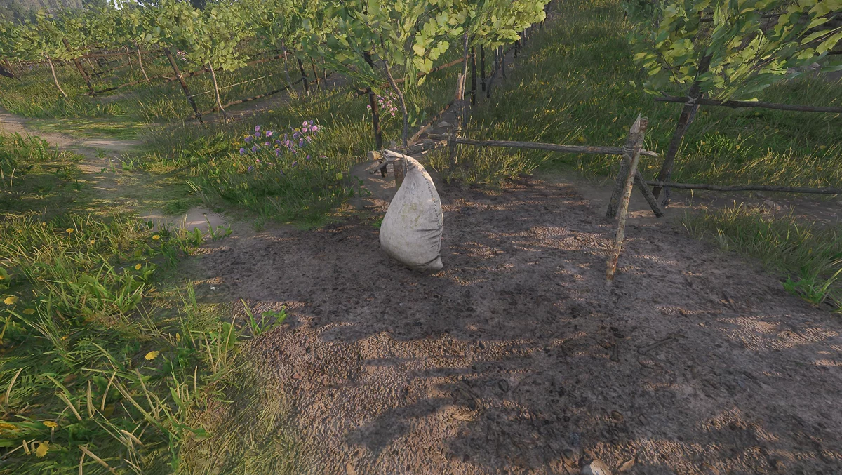 Начинайте смену в 06:00 утра. Вам предстоит собирать сорняки рядом с виноградными лозами. К сорнякам относятся ромашка, зверобой и другие растения, которые вы увидите — на винограднике не должно оставаться ничего, кроме винограда. Также вам нужно будет таскать мешки на поддон, расположенный справа от хижины, где ночуют батраки.
