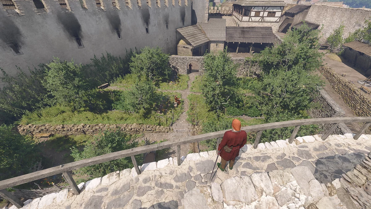 Через крепостную стену: Слева от городского выхода найдите башню. Заберитесь на крепостную стену и двигайтесь вправо до следующей башни. Спуститесь по ней вниз, и вы окажетесь прямо в саду.