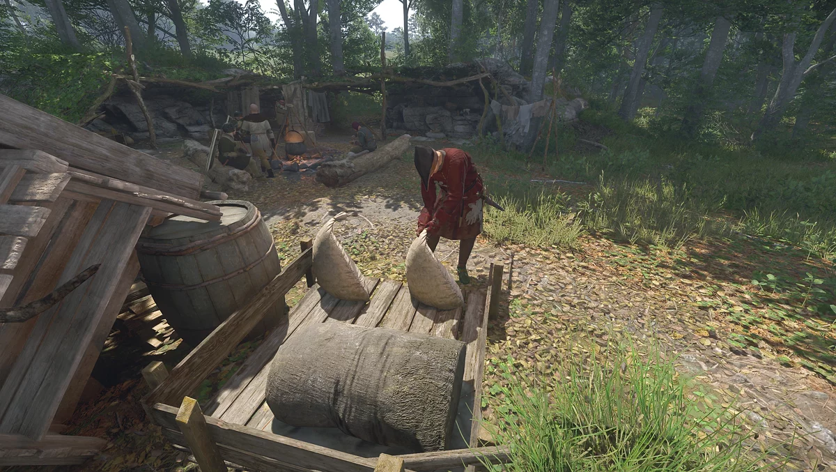 Карел поблагодарит вас, даст немного грошей и попросит уйти, так как его люди не любят чужаков. Перед уходом можно поговорить с разбойником Горюном о лагерной жизни. Теоретически, вы можете уничтожить лагерь и забрать ресурсы, но учтите, что это один из немногих лагерей с разбойниками, где к вам относятся нейтрально.