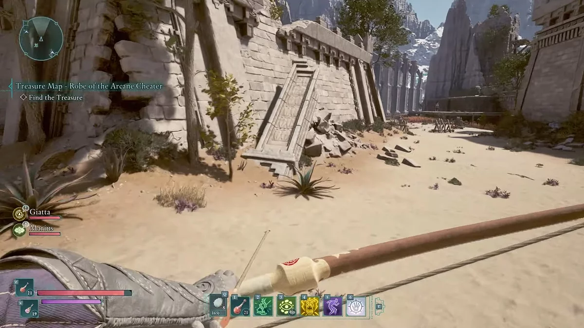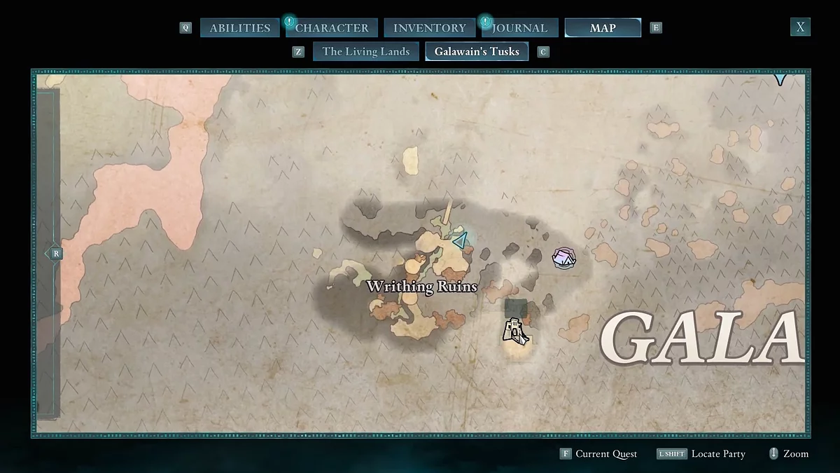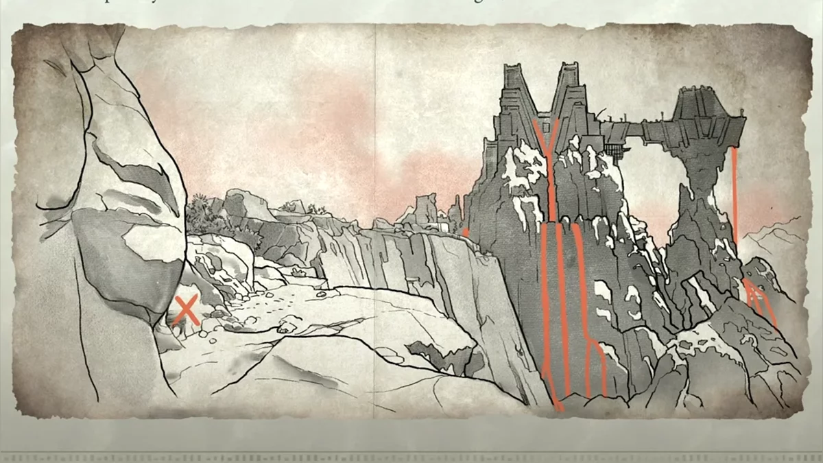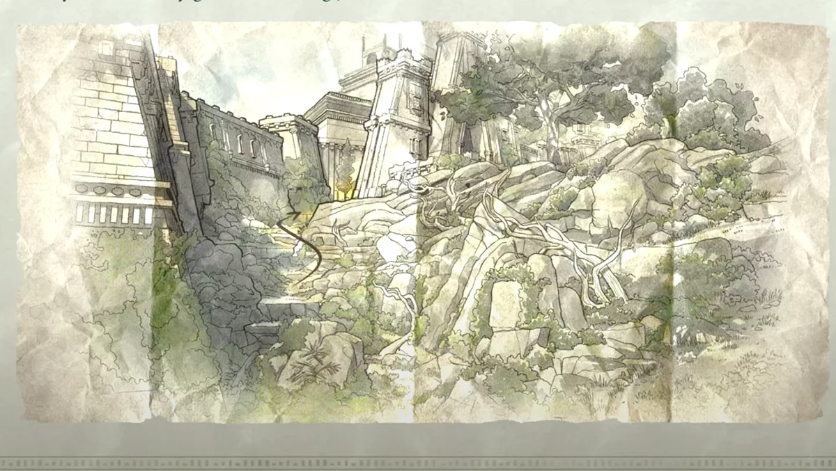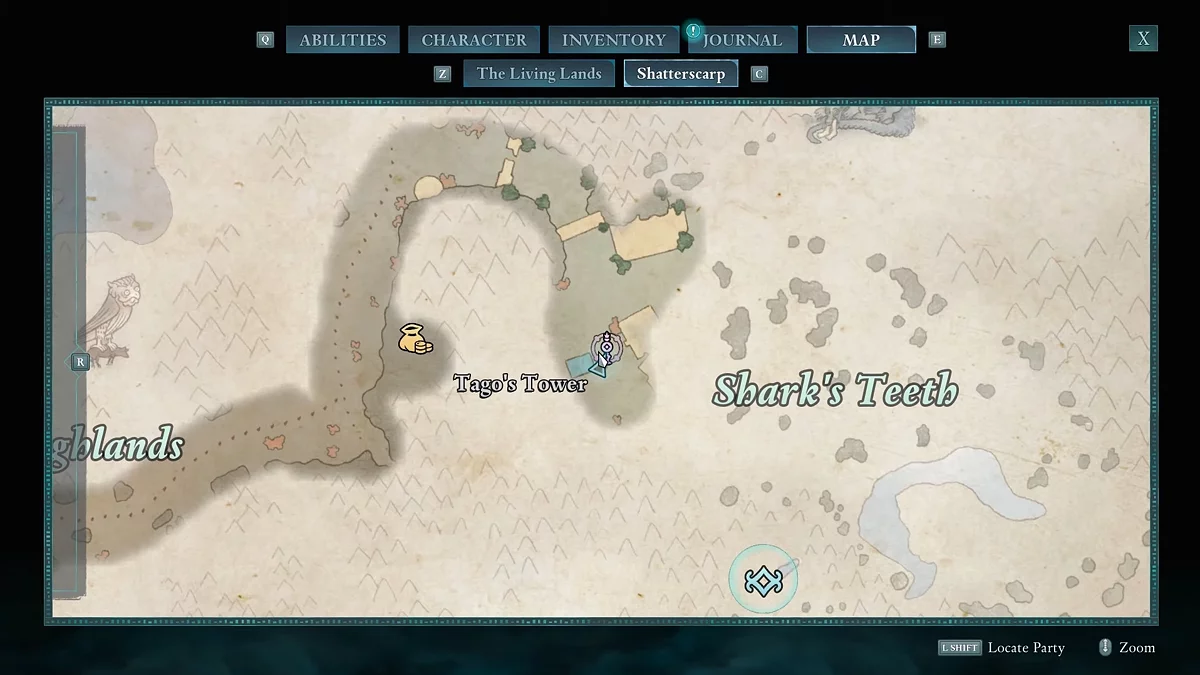 На этот раз нам предстоит отправиться гораздо севернее — к руинам у Акульих зубов, которые также изображены на рисунке. Найдите постройку, отмеченную крестиком: чтобы подняться, используйте обвалившуюся колонну с одного из ближних углов.