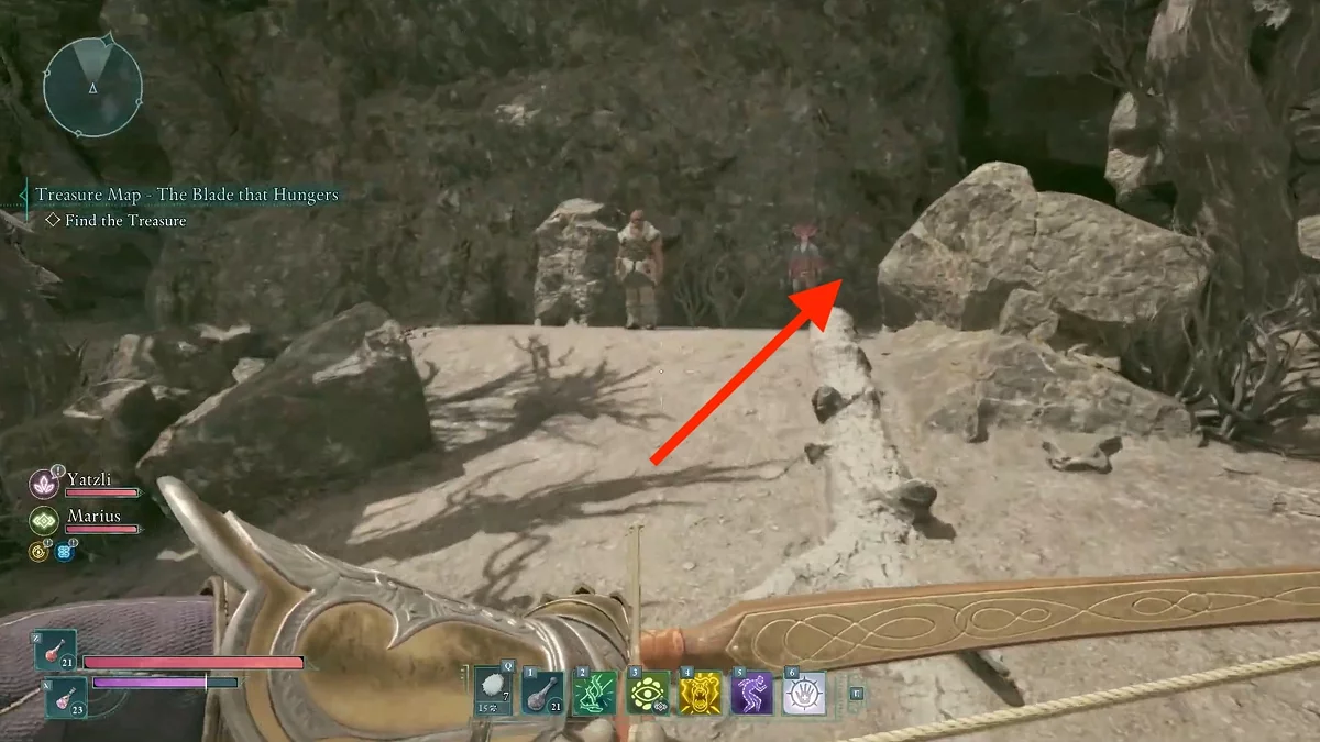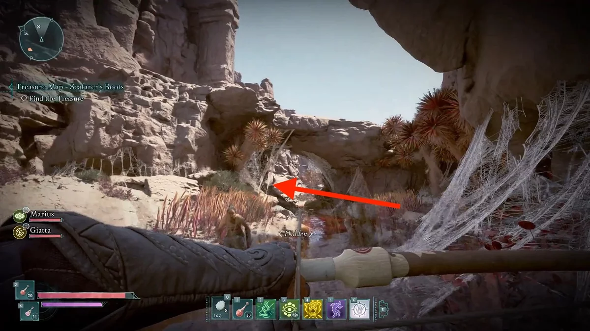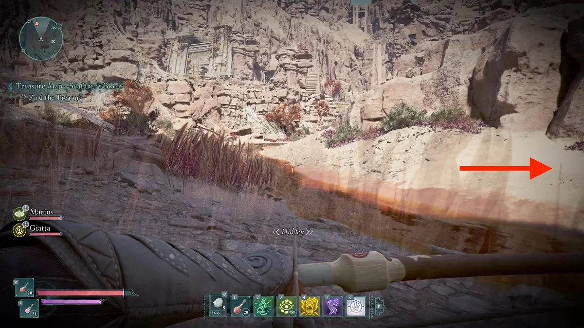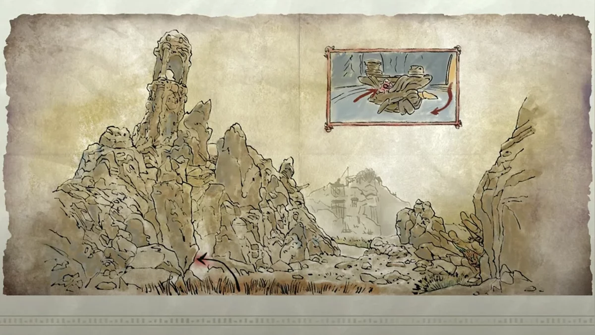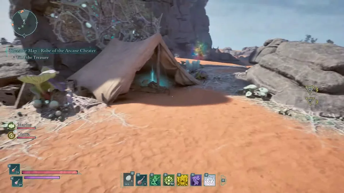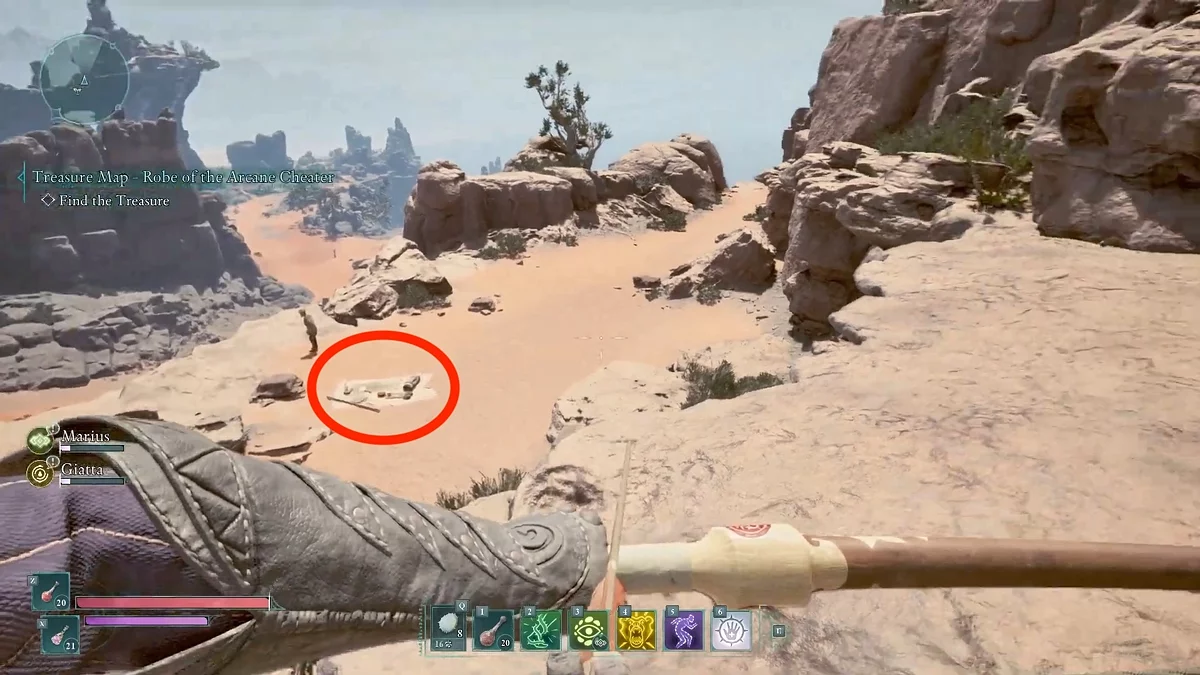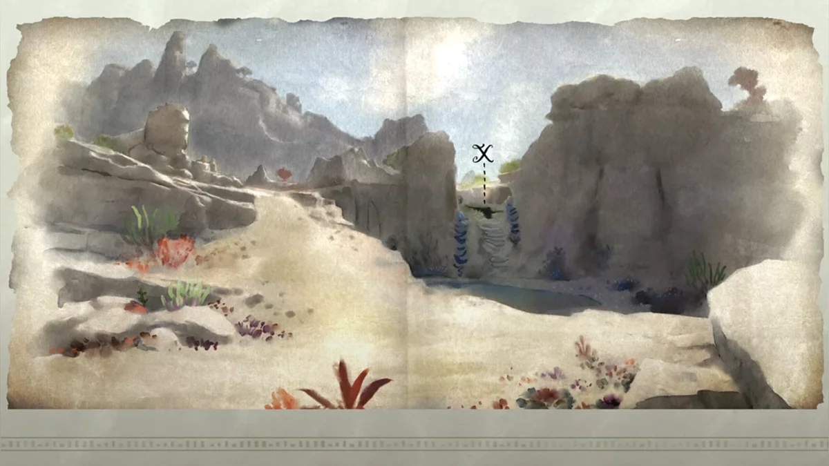 Отправляйтесь к небольшому палаточному лагерю в самом центре Великого песчаного моря. Карту хранит лежащий внутри скелет.
