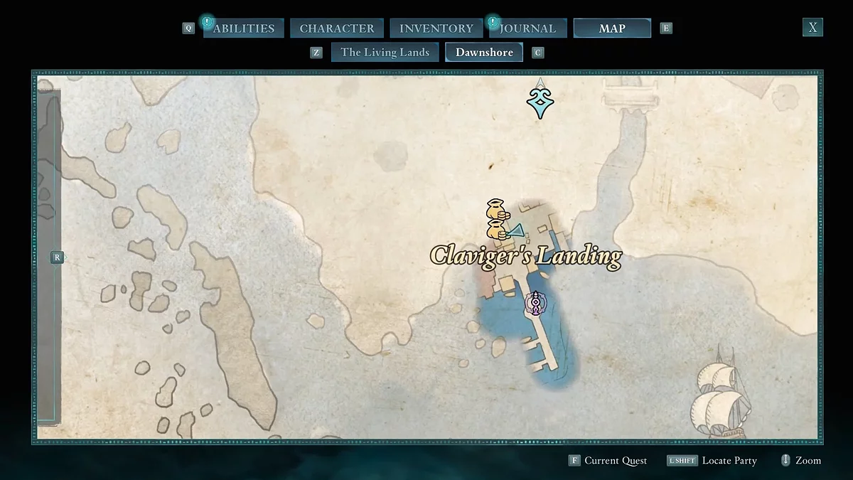 Сначала заберем карту неподалеку от местоположения первой: в одном из торговых лавок причала клавигера. Она продается у Линны за 100 монет.