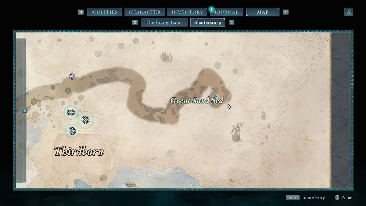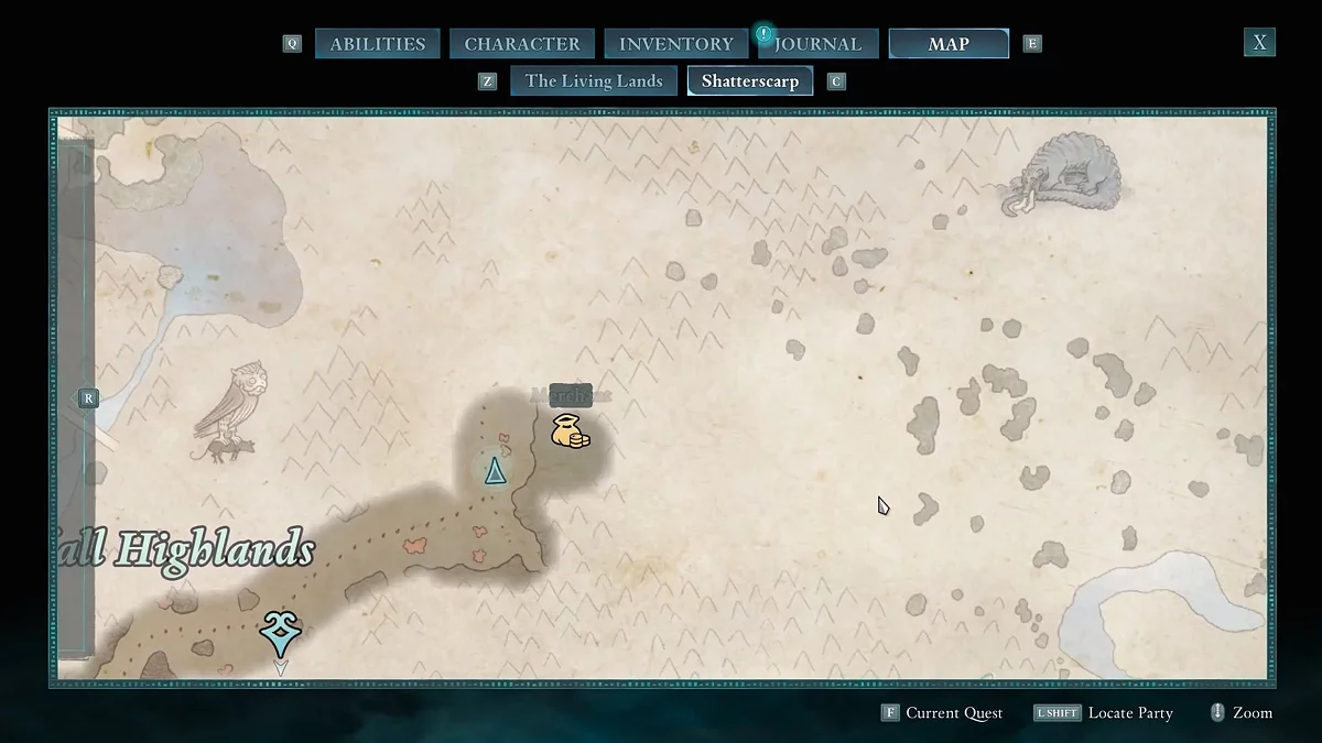 Отправляемся в Нагорье Смертопада, а точнее — к торговцу в пещере, расположенной к востоку от этой локации. За 1680 монет он предложит вам карту, которая станет полезным инструментом для дальнейших исследований.