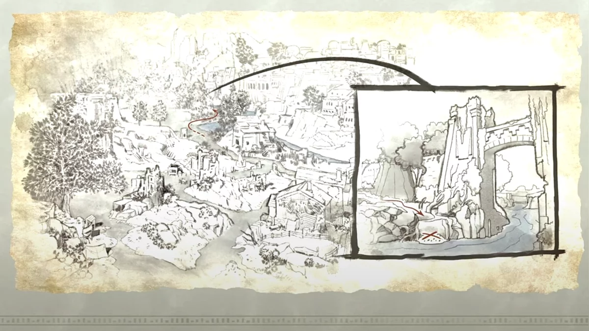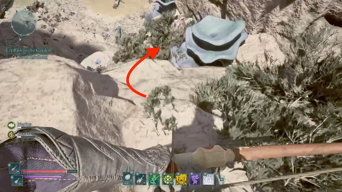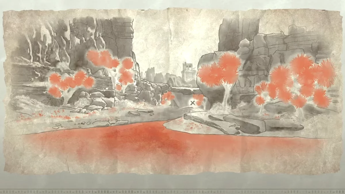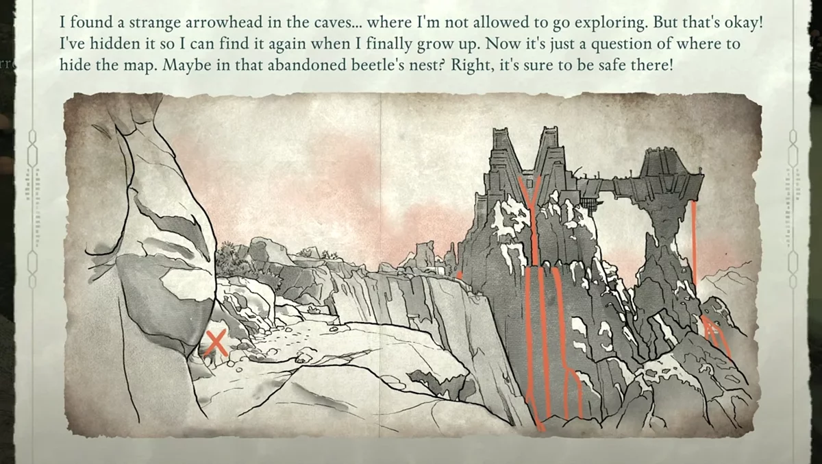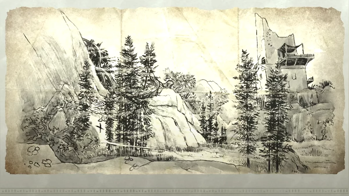 Посетим территорию неподалеку от Третьерожденного: на краю обрыва лежат вещи одного из местных обитателей, среди которых можно найти и карту.