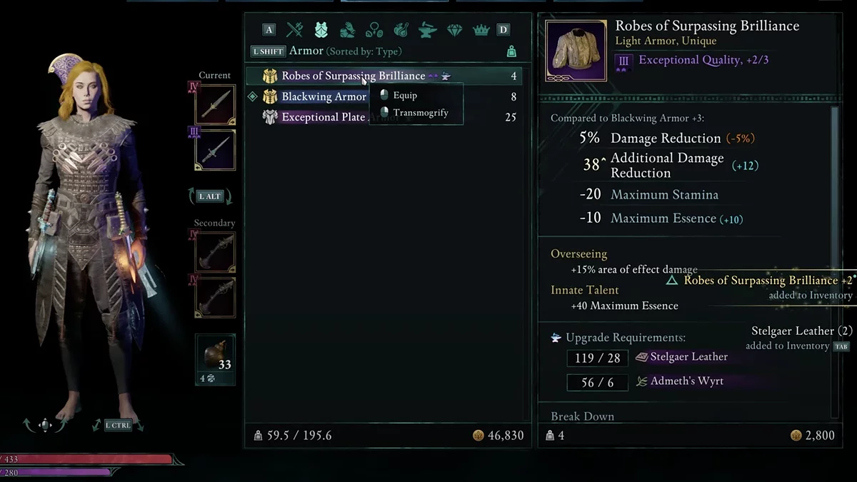 Броня, идеально подходящая для магов. Несмотря на довольно низкий показатель отражения урона (всего 5%), позволяет повысить области применения эффектов на 15%, а также увеличить количество очков колдовства на 40%.
