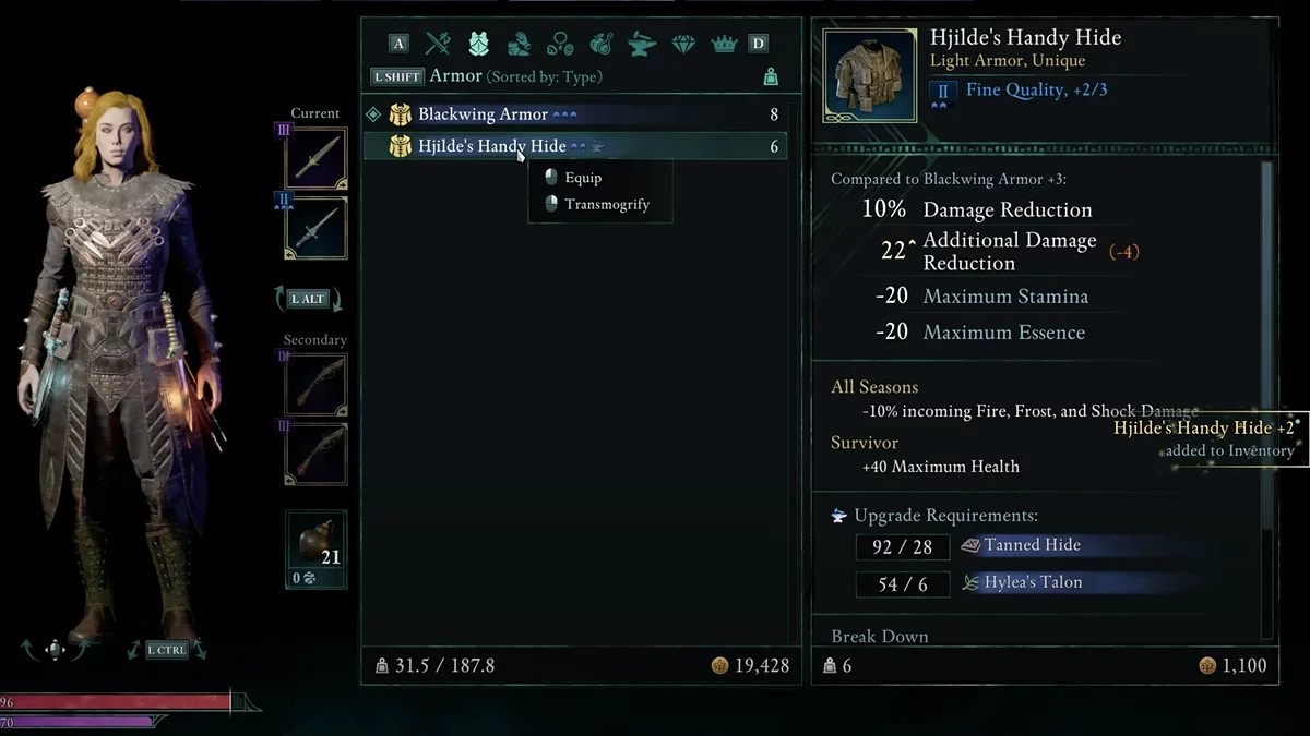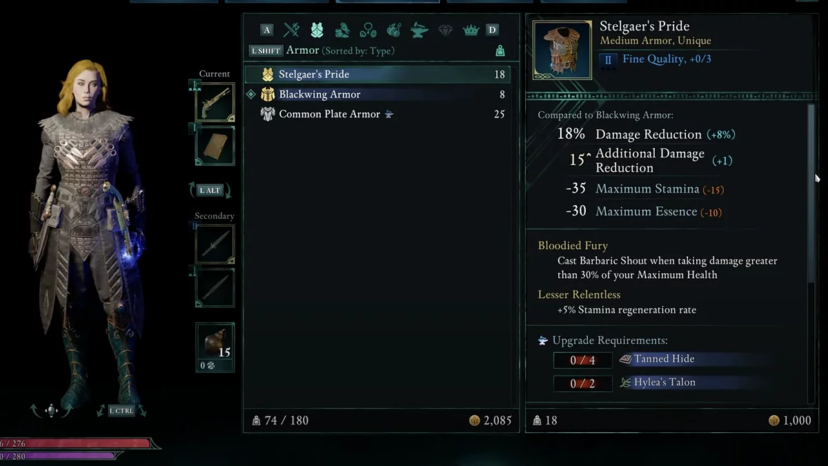 Это полный набор брони, изначально представленный в обычной редкости второго уровня. Снижает получаемый урон на 18%, а также улучшает скорость восстановления выносливости на 5% и дается возможность использования варварского крюка, если вы получили урон размером более 30% от максимального здоровья.