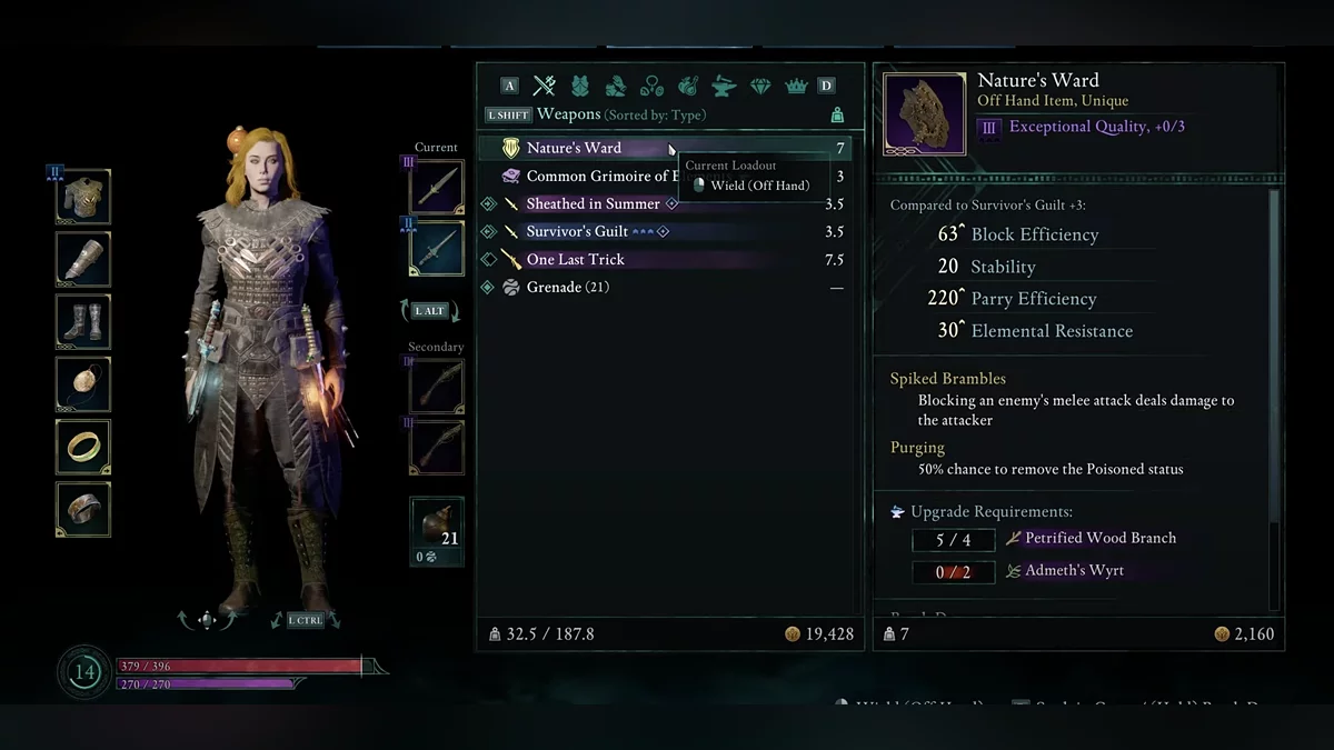 Отлично подходит для использования во время блока. Помимо достаточного высокого значения соответствующих характеристик, использование этого предмета для отбития ближних атак противника позволяет нанести врагу ответный урон и повышает эффективность защиты от яда на 50%.