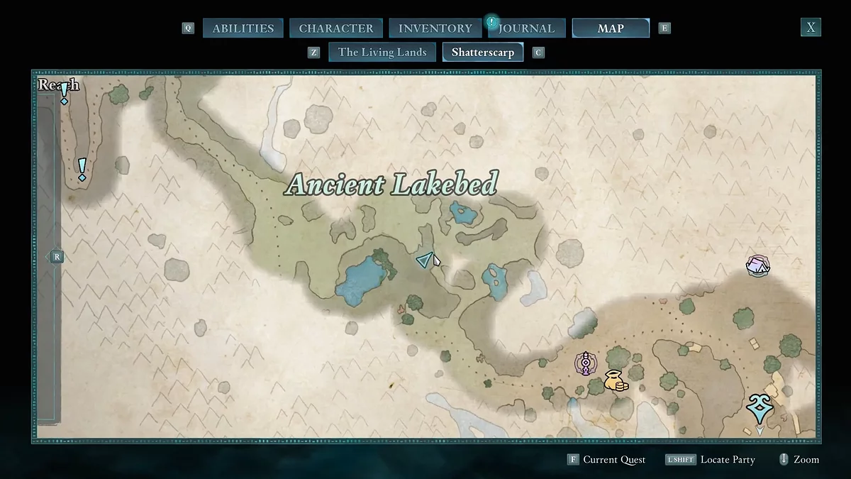 Отправляемся на юго-запад от Дна древнего озера, следуя по тропе от Орлиного предела. Двигайтесь в противоположную сторону от дома и живописного склона: там вы найдете обрыв и небольшой спуск. Используя навыки паркура, аккуратно спуститесь вниз, чтобы забрать награду, спрятанную в красивой расщелине.