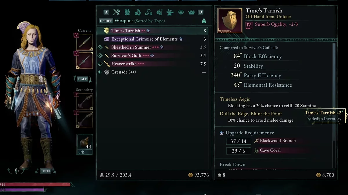 Достаточно сильный щит, обладающий мощным блоком и сопротивлением к обморожению, отравлением и другим эффектам. С вероятностью 20% каждый заблокированный удар противника может восстановить 10 единиц выносливости, с шансом в 10% — избежать повреждений от атак в ближнем бою.