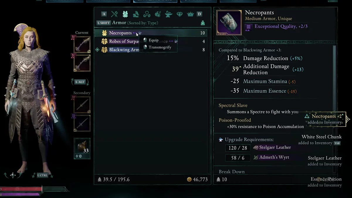 Получим в награду лишь штаны, которые снижают на 15% весь получаемый урон. Кроме того, они призывают союзного духа во время сражений и повышают стойкость иммунитета против яда.