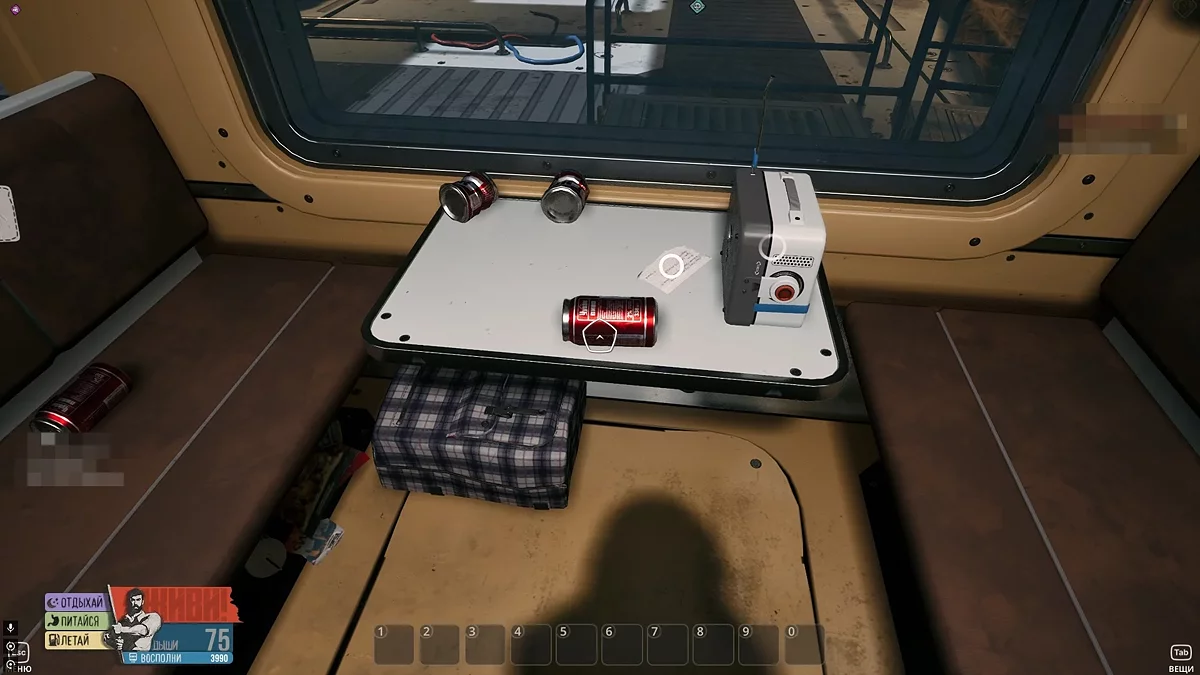 После вступительной катсцены осмотрите вагон. Ваш герой полностью голый, так что отыщите здесь скафандр и шлем — обязательные элементы безопасного нахождения в космосе. Также вы можете обнаруживать различные находки, такие как постеры, письма и другие предметы. На столе лежит письмо с адресом Мэри (1/48) и телек (2/48).