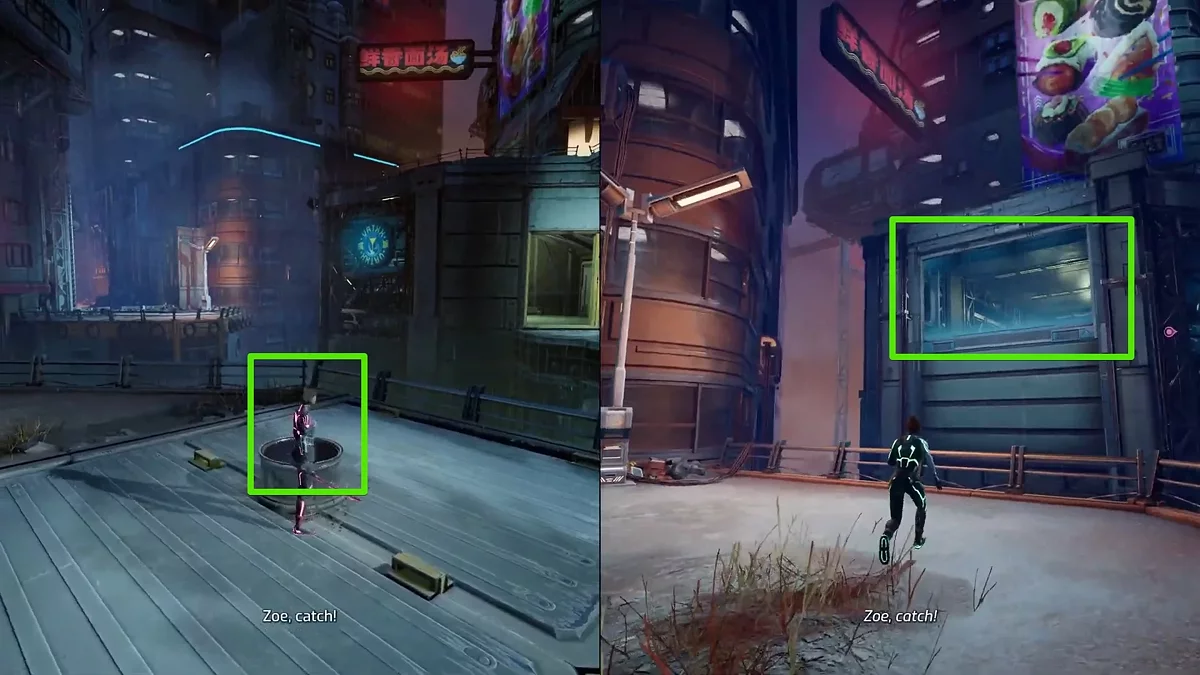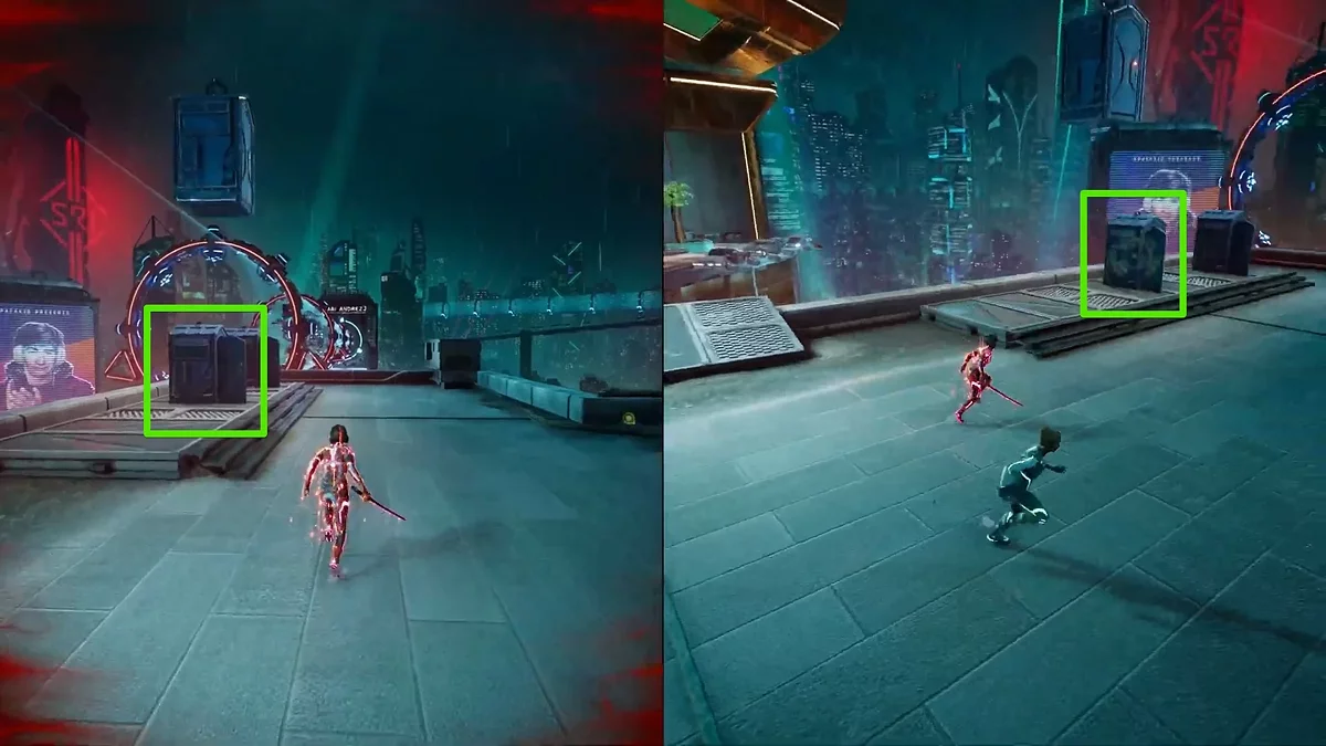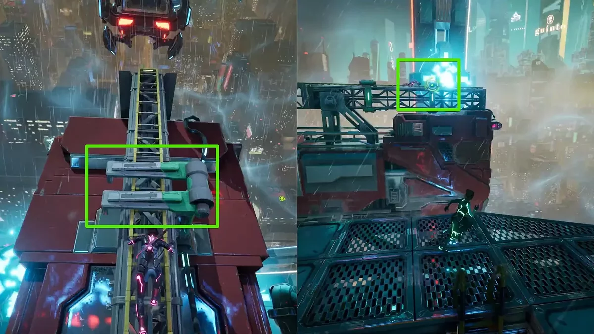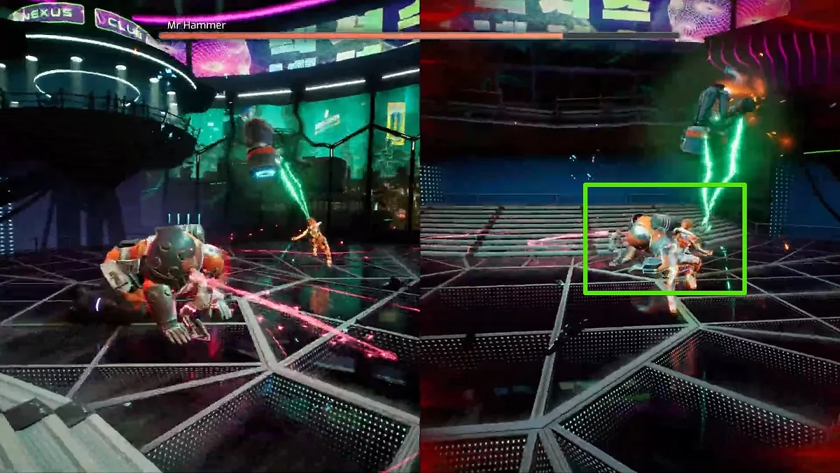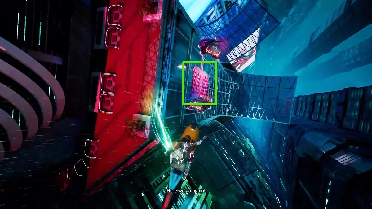 Дальше предстоит немного паркура до крыши одного из зданий. Здесь поднимите энергетический элемент — приятель разобьёт его и остановит вращение вентилятора. Так вы сможете проникнуть в ночной клуб. Касаться пола нельзя: используйте места для зацепа и металлические площадки. В конце уровня садитесь в лифт и смотрите катсцену, после которой придётся сразиться с боссом.
