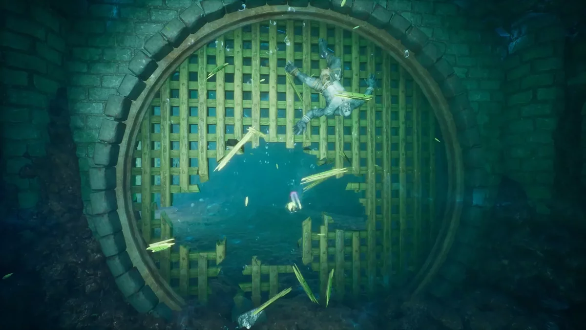 Вторая локация начнётся с побега от огромных огров. Следуйте по правой стороне, уклоняясь от бочек, а после разрушения платформы просто бегите по направлению камеры, пока не упадёте в воду. Даже здесь враги будут преследовать вас, однако используйте их для побега: первый противник всегда будет разрушать часть решётки в трубе, так что плывите именно туда.